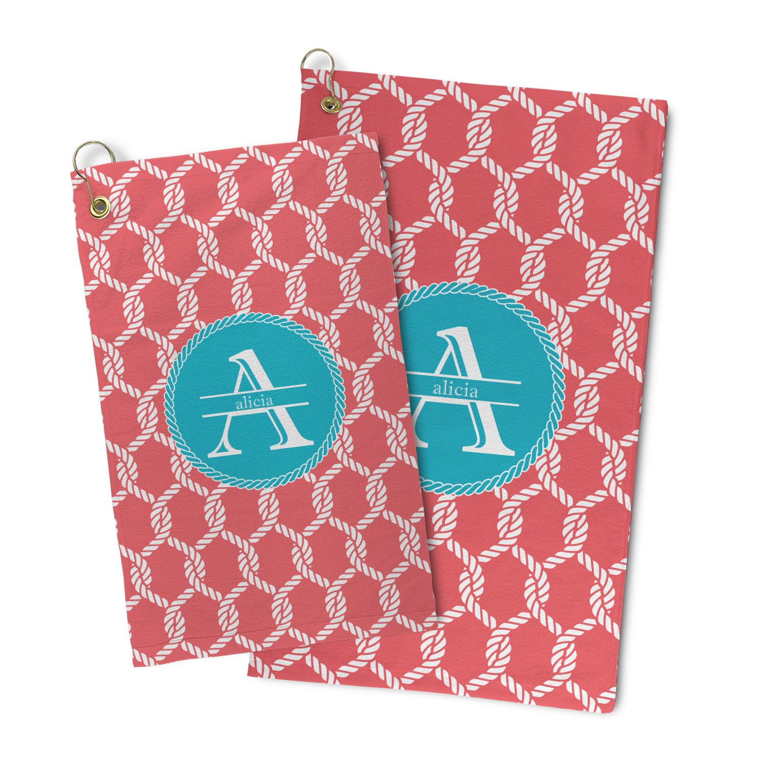 This linked ropes design is perfect for your real or dream beach house. The nautical design has ropes linked together to form diamonds. We have chosen a coral and teal palette for our design. We also chose a rope label and a name initial combination for our personalization.