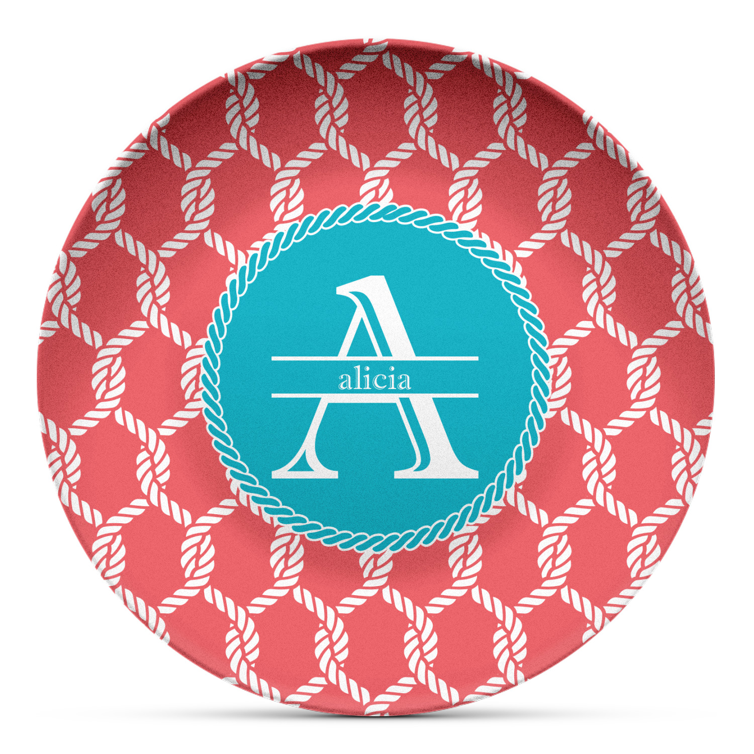 This linked ropes design is perfect for your real or dream beach house. The nautical design has ropes linked together to form diamonds. We have chosen a coral and teal palette for our design. We also chose a rope label and a name initial combination for our personalization.