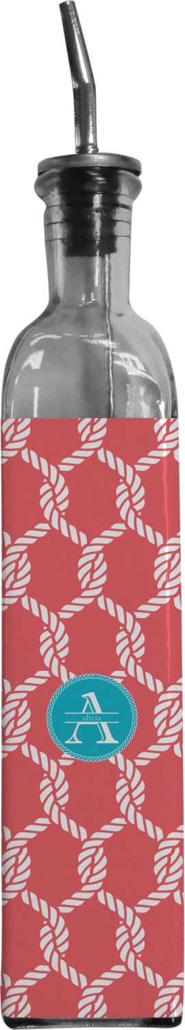 Made from recycled glass in Spain, these oil bottles have a classic, delicate look, and are accompanied by a metal spout for controlled pouring. Each bottle holds approximately 13 ounces and measures at 12 by 2 inches. We customize your glass oil bottle by applying your personalized design on the front and sides, using an adhesive. Our customizable stickers are made from high quality, gloss vinyl and are printed with waterproof, eco-solvent inks. These pieces are machine cut for accuracy and symmetry. The result is a robust, waterproof, adhesive decal that will not fade or deteriorate with time.