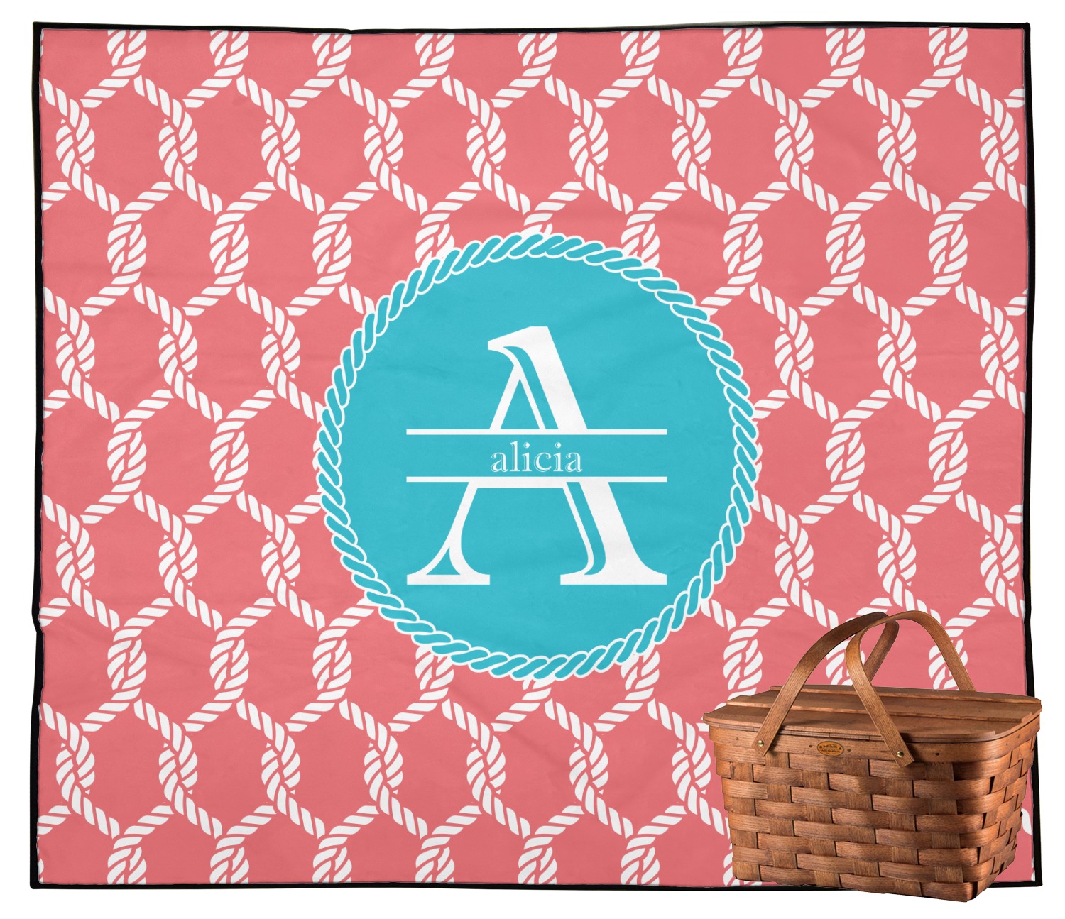 This linked ropes design is perfect for your real or dream beach house. The nautical design has ropes linked together to form diamonds. We have chosen a coral and teal palette for our design. We also chose a rope label and a name initial combination for our personalization.