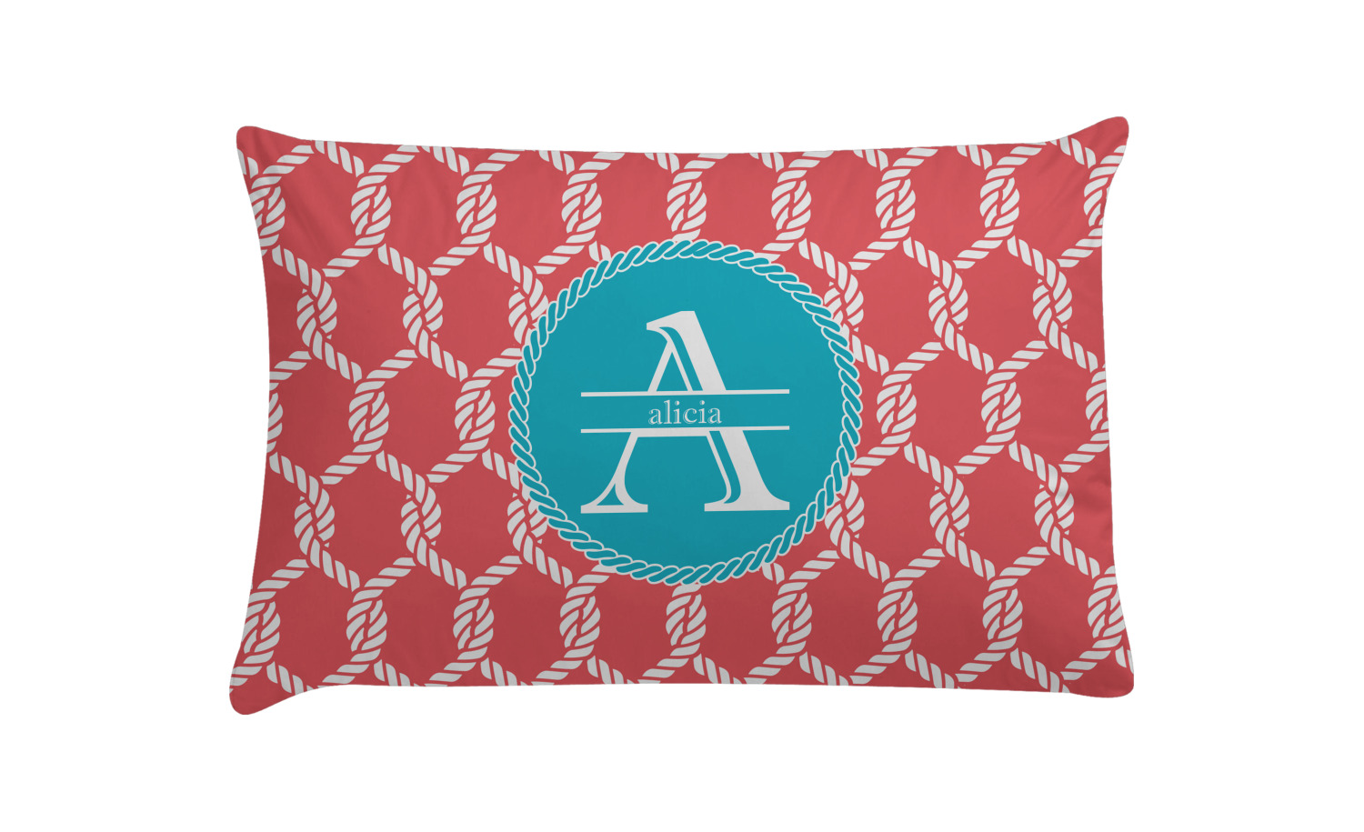This linked ropes design is perfect for your real or dream beach house. The nautical design has ropes linked together to form diamonds. We have chosen a coral and teal palette for our design. We also chose a rope label and a name initial combination for our personalization.