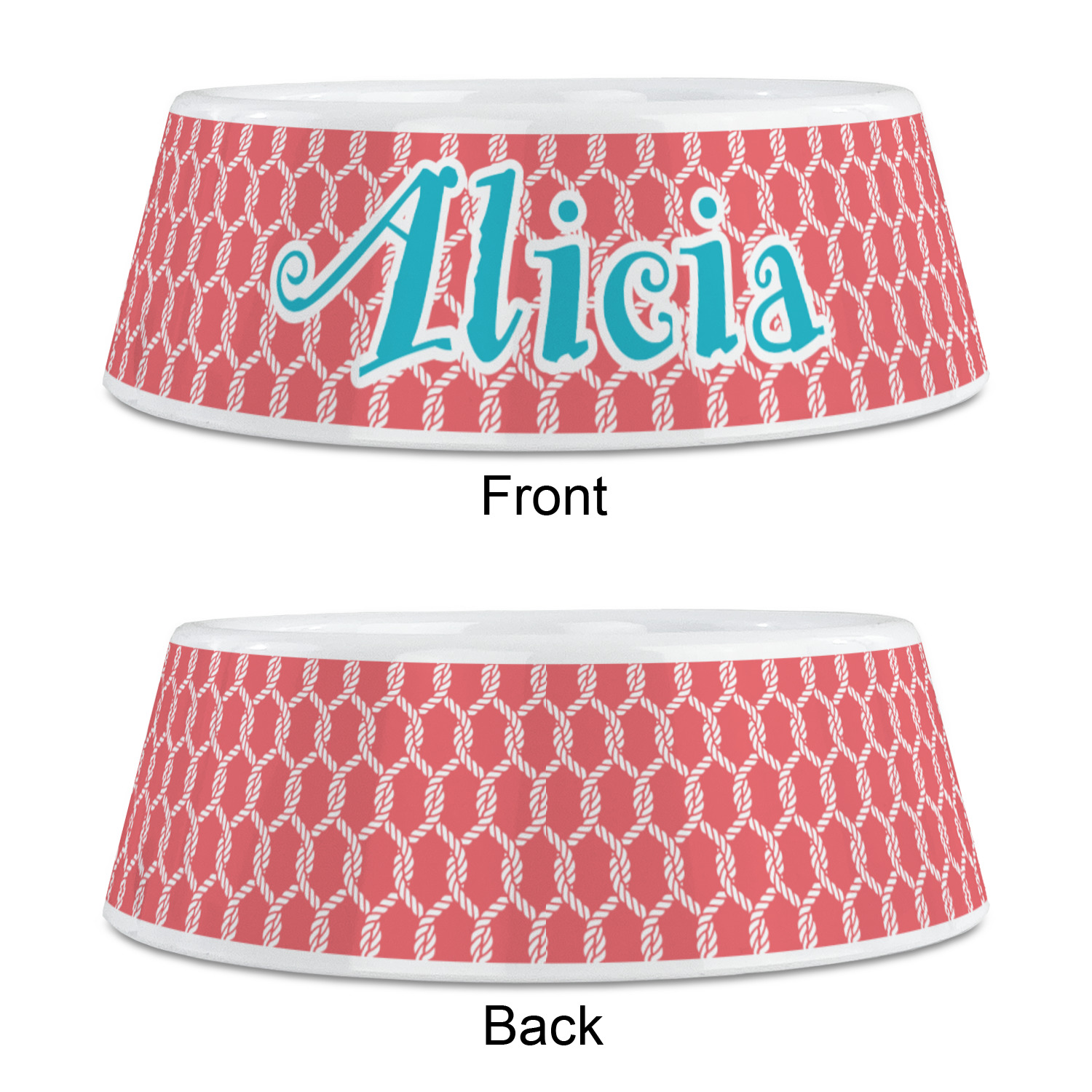 This linked ropes design is perfect for your real or dream beach house. The nautical design has ropes linked together to form diamonds. We have chosen a coral and teal palette for our design. We also chose a rope label and a name initial combination for our personalization.