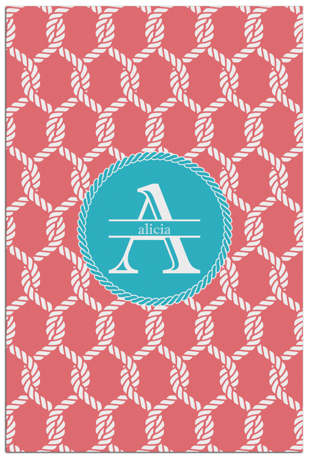 This linked ropes design is perfect for your real or dream beach house. The nautical design has ropes linked together to form diamonds. We have chosen a coral and teal palette for our design. We also chose a rope label and a name initial combination for our personalization.
