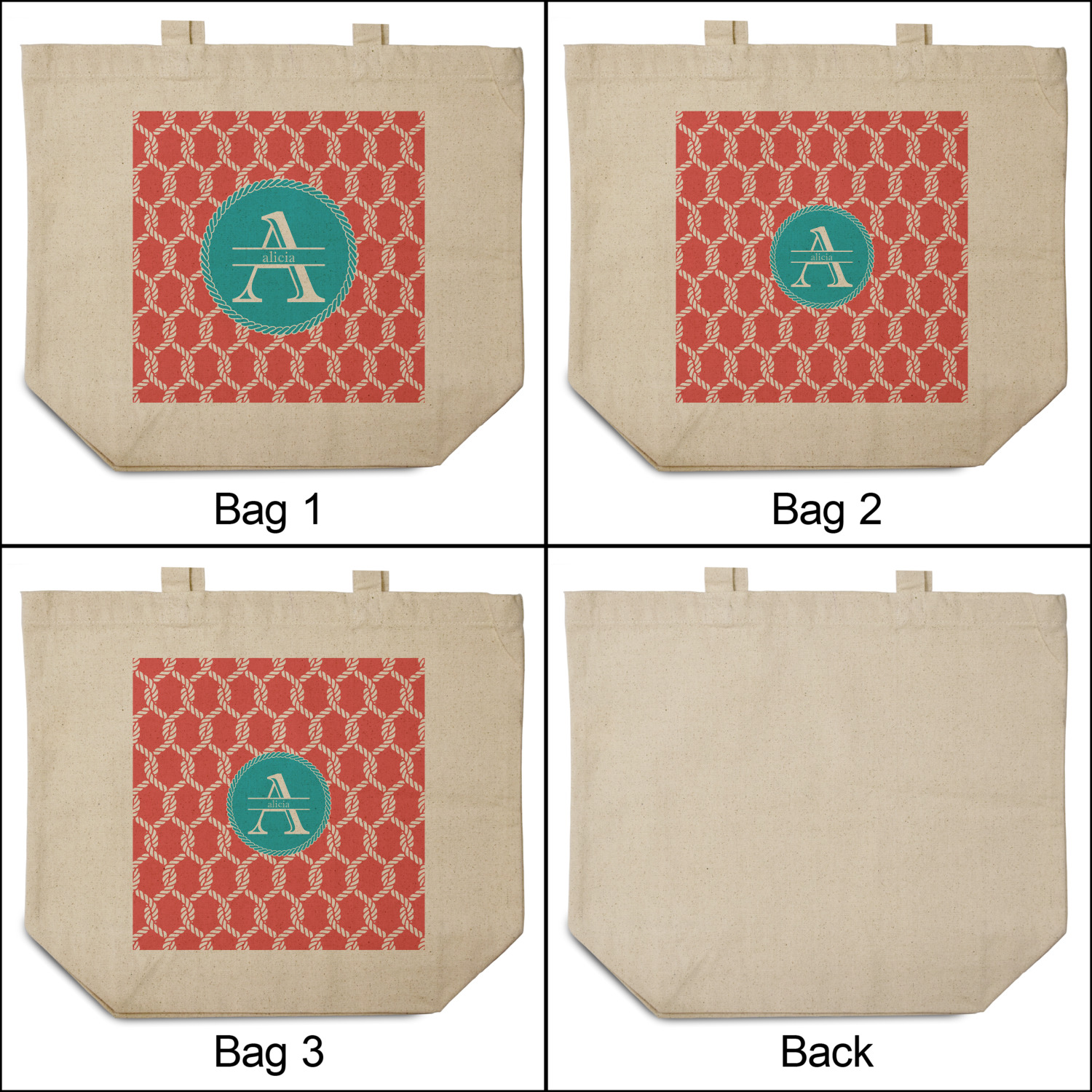 This linked ropes design is perfect for your real or dream beach house. The nautical design has ropes linked together to form diamonds. We have chosen a coral and teal palette for our design. We also chose a rope label and a name initial combination for our personalization.