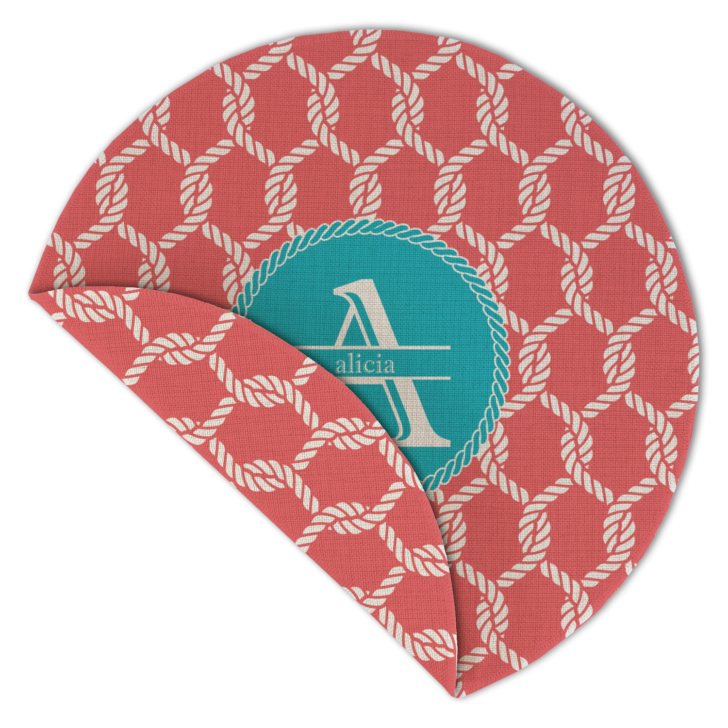 This linked ropes design is perfect for your real or dream beach house. The nautical design has ropes linked together to form diamonds. We have chosen a coral and teal palette for our design. We also chose a rope label and a name initial combination for our personalization.