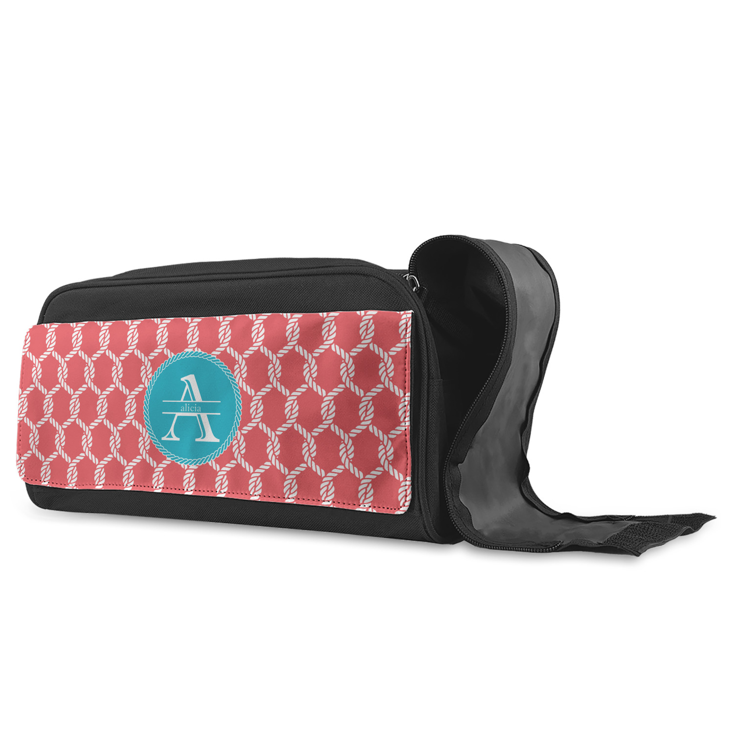 This linked ropes design is perfect for your real or dream beach house. The nautical design has ropes linked together to form diamonds. We have chosen a coral and teal palette for our design. We also chose a rope label and a name initial combination for our personalization.