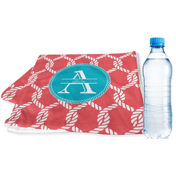 This linked ropes design is perfect for your real or dream beach house. The nautical design has ropes linked together to form diamonds. We have chosen a coral and teal palette for our design. We also chose a rope label and a name initial combination for our personalization.