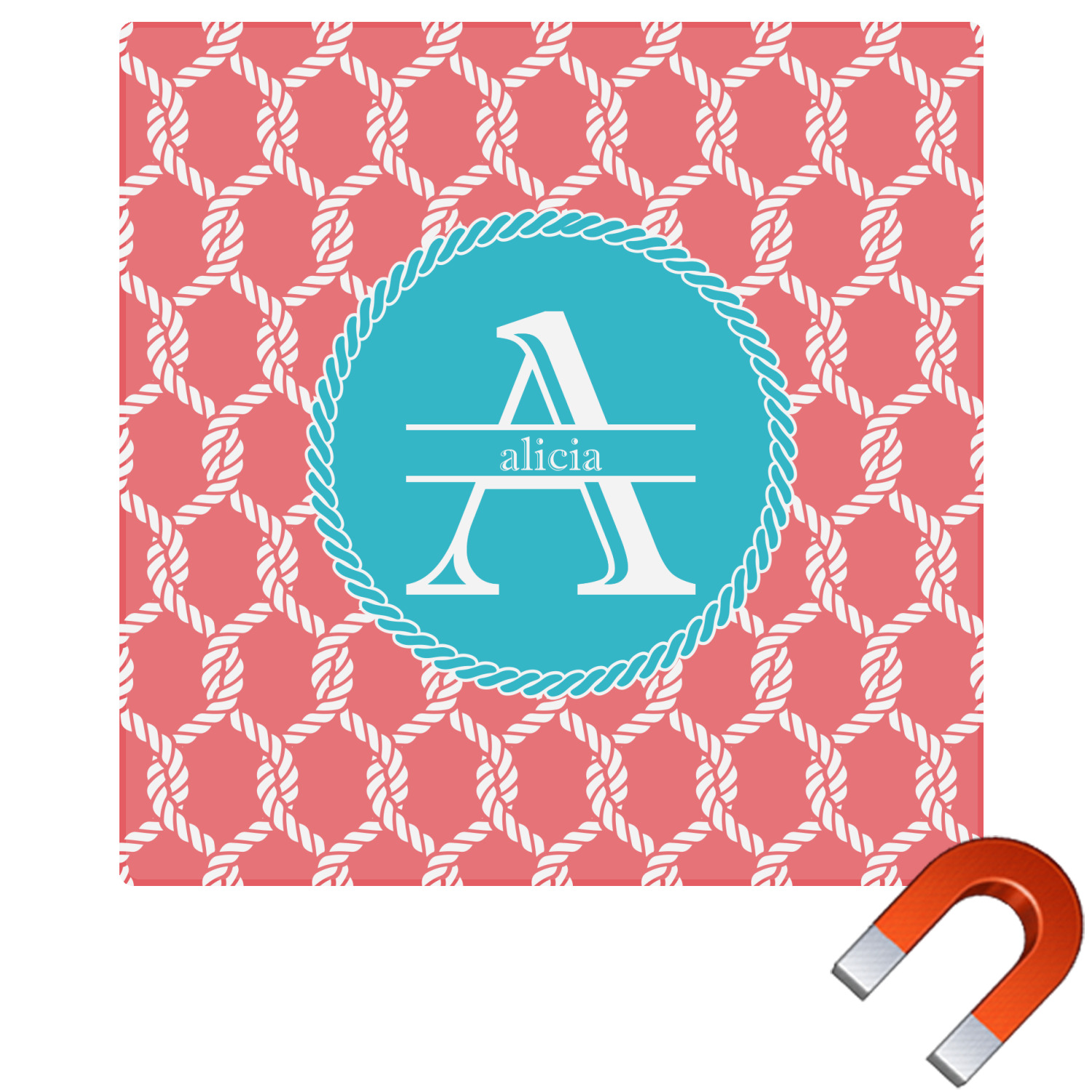 This linked ropes design is perfect for your real or dream beach house. The nautical design has ropes linked together to form diamonds. We have chosen a coral and teal palette for our design. We also chose a rope label and a name initial combination for our personalization.