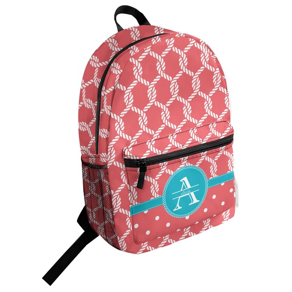 This linked ropes design is perfect for your real or dream beach house. The nautical design has ropes linked together to form diamonds. We have chosen a coral and teal palette for our design. We also chose a rope label and a name initial combination for our personalization.