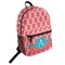 This backpack is the classic style with a zipper pocket on the front and a large zipper opening on top. There is also a small handle on top for hanging or carrying. The backpack straps are adjustable, so they should fit on most people. They are approximately 17"H x 12.5"W x 5"D, which is plenty of room for books, writing utensils, a laptop, and more! On the outside is a mesh pocket that is perfect for a waterbottle.