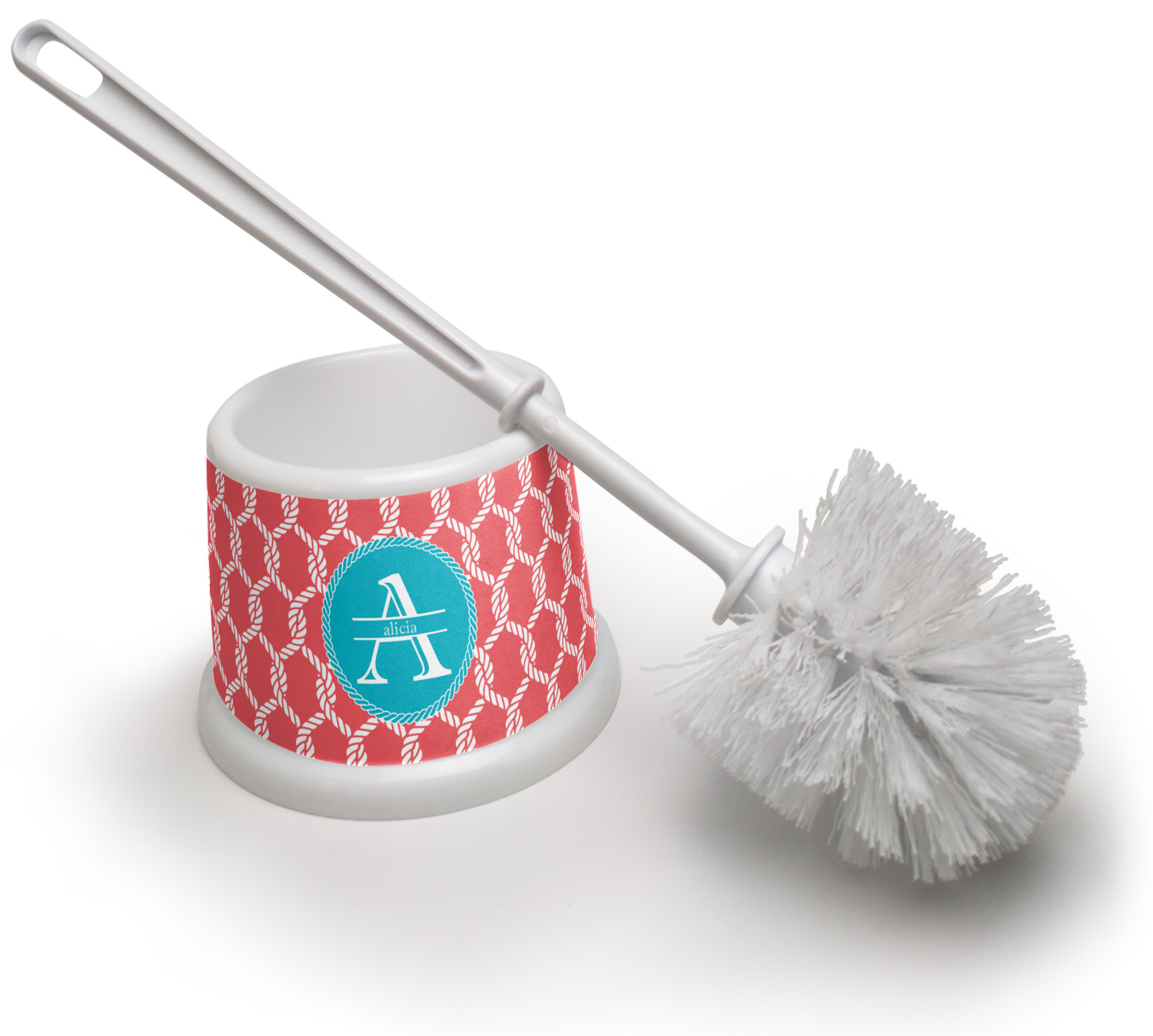 This linked ropes design is perfect for your real or dream beach house. The nautical design has ropes linked together to form diamonds. We have chosen a coral and teal palette for our design. We also chose a rope label and a name initial combination for our personalization.