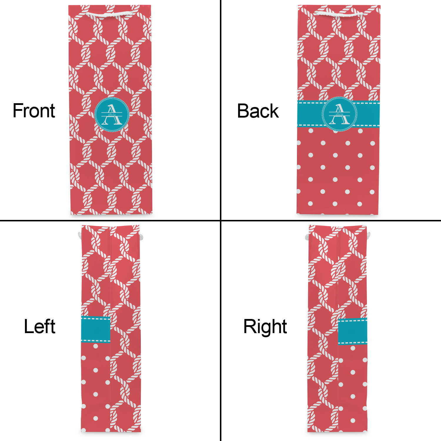 This linked ropes design is perfect for your real or dream beach house. The nautical design has ropes linked together to form diamonds. We have chosen a coral and teal palette for our design. We also chose a rope label and a name initial combination for our personalization.