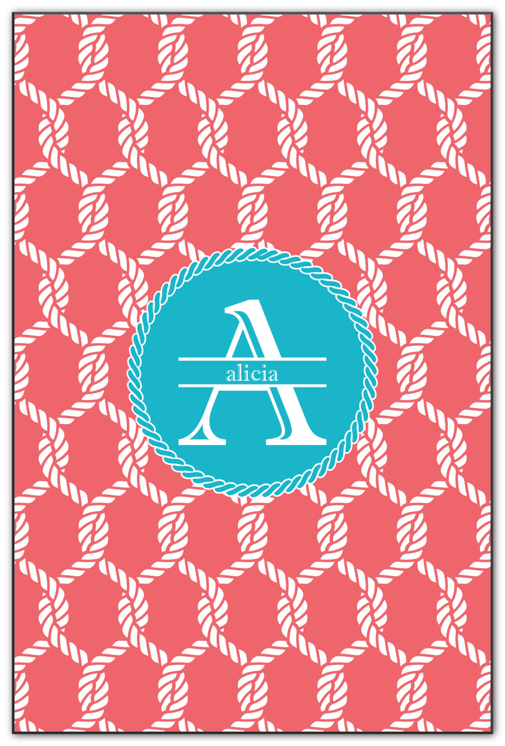 This linked ropes design is perfect for your real or dream beach house. The nautical design has ropes linked together to form diamonds. We have chosen a coral and teal palette for our design. We also chose a rope label and a name initial combination for our personalization.