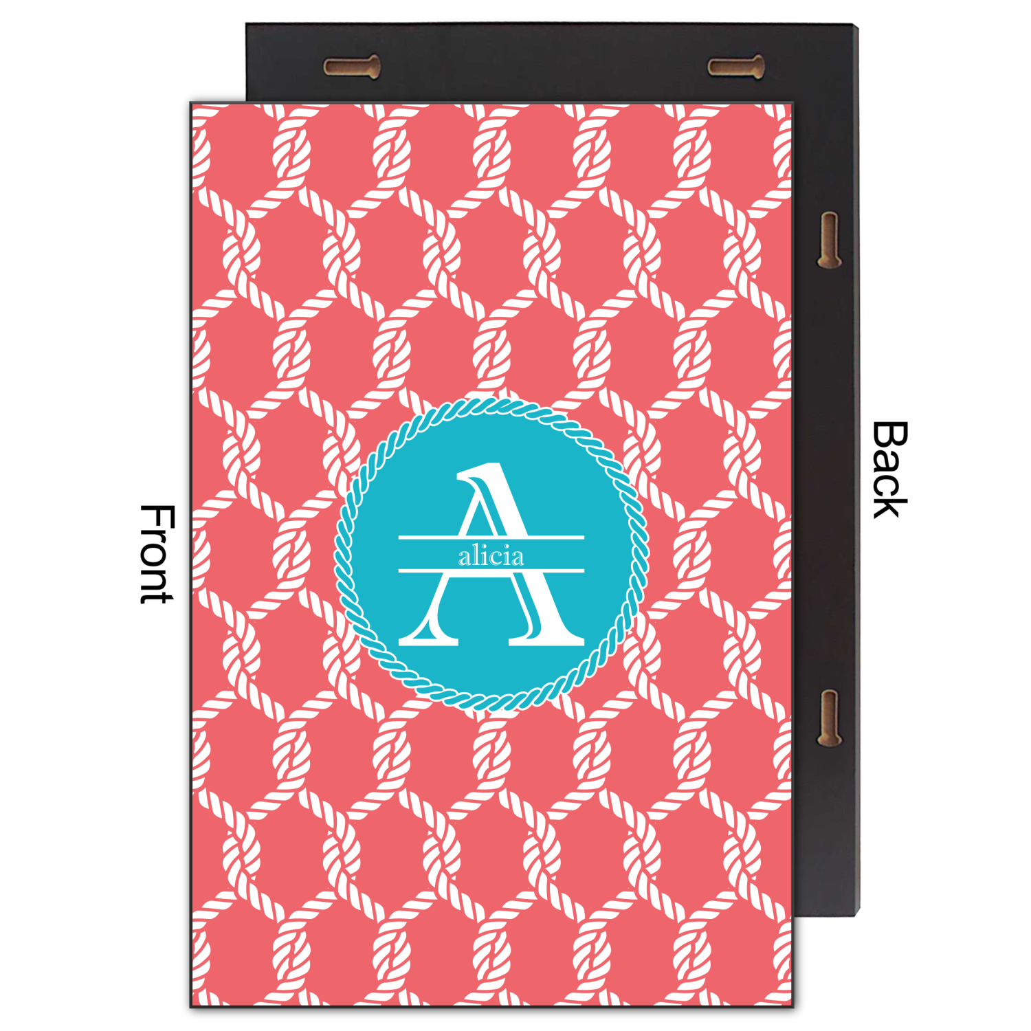 This linked ropes design is perfect for your real or dream beach house. The nautical design has ropes linked together to form diamonds. We have chosen a coral and teal palette for our design. We also chose a rope label and a name initial combination for our personalization.