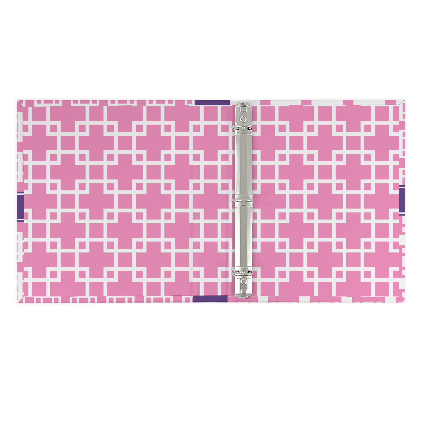 Made from a sturdy cardboard base with a full high quality canvas textured vinyl wrap with the design of your choice. Unlike our standard 3-ring binder with the full wrap design your artwork wraps from the front and back and into the inside of the binder.