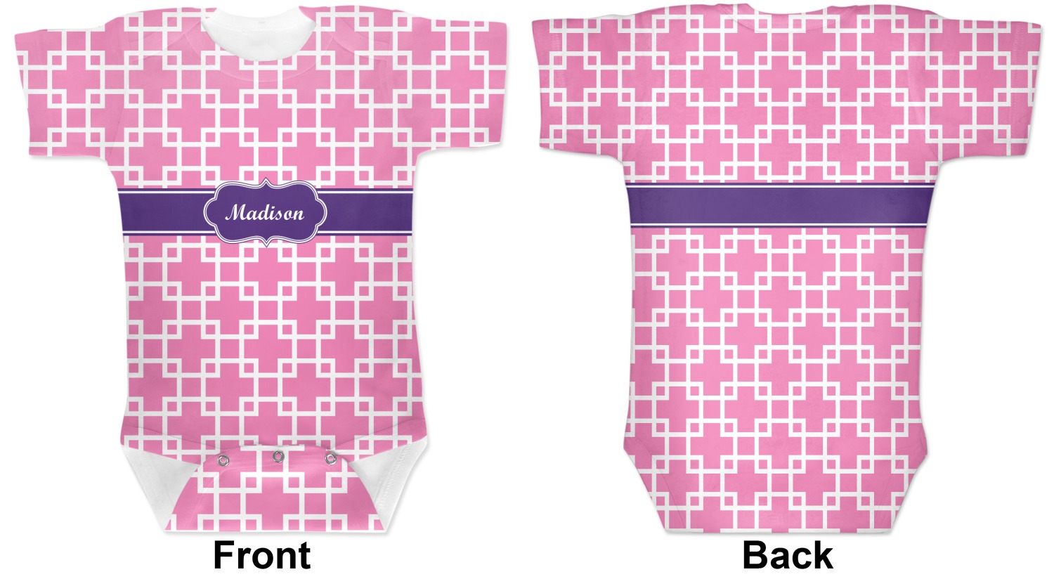 These cute baby bodysuits are made of stretchy, soft-to-the-touch polyester, making them very comfortable for your baby. These baby bodysuits also have snaps on the bottom to give easy access during changing times. Your personalization covers the entirety of this custom baby bodysuit, but the interior is white in color. As these are unisex baby bodysuits, they will work perfectly as baby girl bodysuits and baby boy bodysuits!