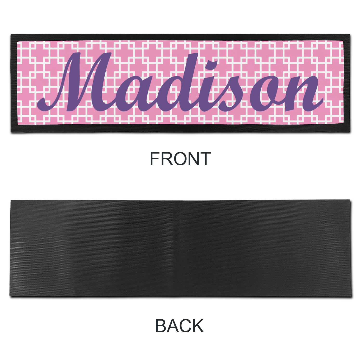 This design that is shown is a pink background with white squares, however it is available in multiple colors. We also chose to use a classic ribbon and a decorative rectangular label in purple. Ribbon and Labels are also available in multiple colors.