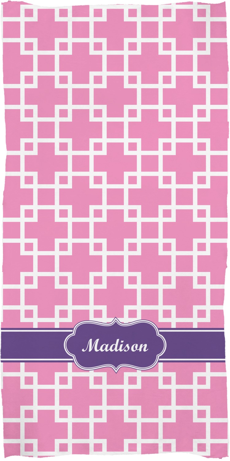 These customized bath towels are slightly larger than your standard towel and are the ideal size for wrapping around your body. They measure approximately 60" x 30". Your customization is displayed across the entire front face of the towel, while the back is white.