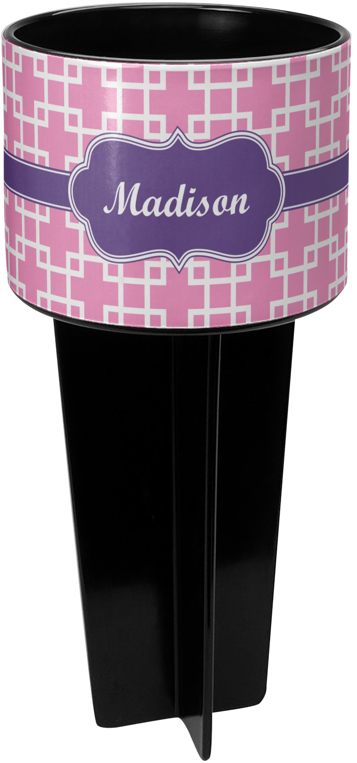 This cup holder has a large stake at its bottom that anchors it to the sand or ground below, while the cup holder rests above the stake. The entire drink holder is made of durable plastic and displays your customization around the cup holder portion. We sell these personalized beach spikers in two different colors: black and white.