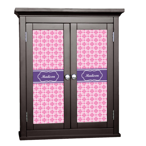 This design that is shown is a pink background with white squares, however it is available in multiple colors. We also chose to use a classic ribbon and a decorative rectangular label in purple. Ribbon and Labels are also available in multiple colors.