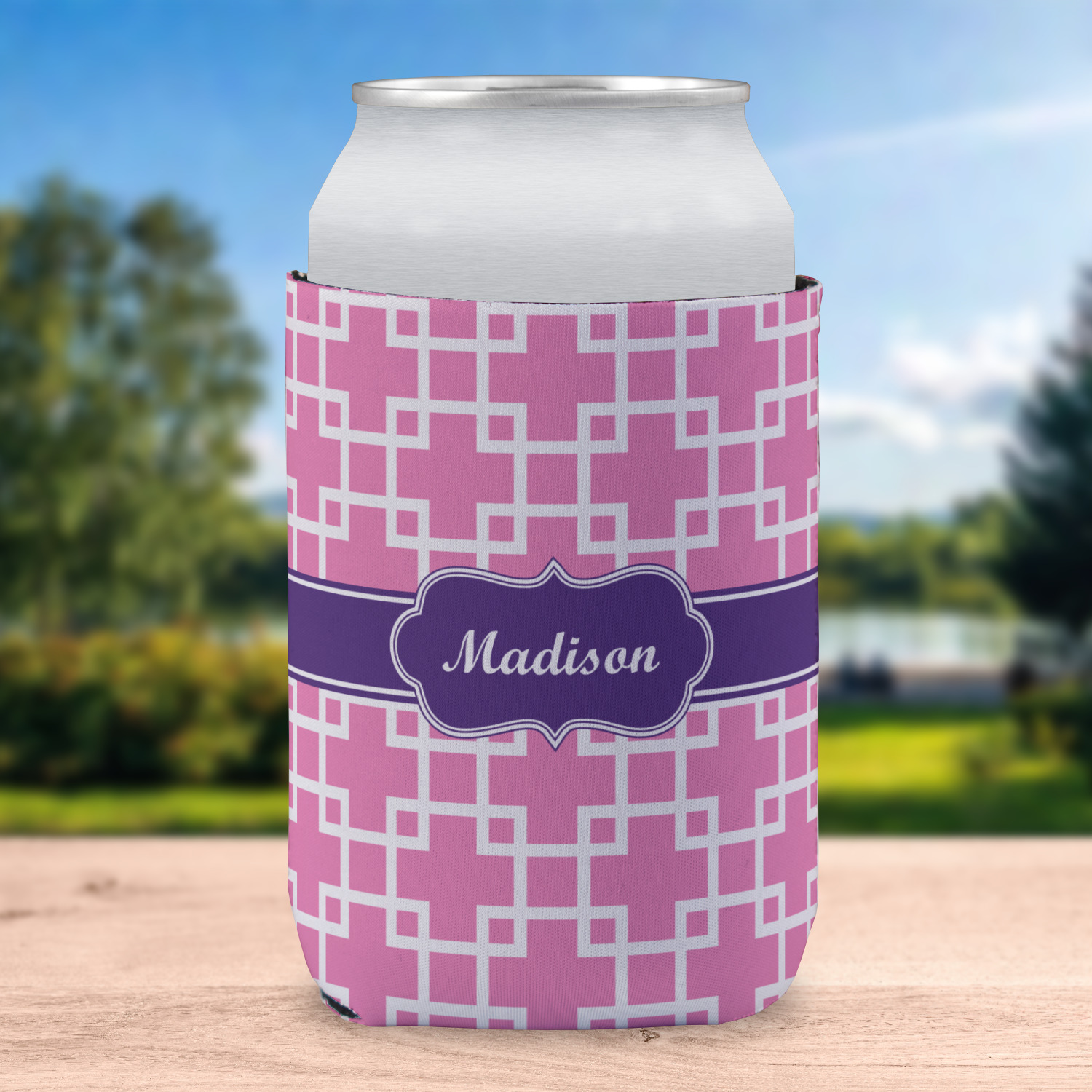This design that is shown is a pink background with white squares, however it is available in multiple colors. We also chose to use a classic ribbon and a decorative rectangular label in purple. Ribbon and Labels are also available in multiple colors.
