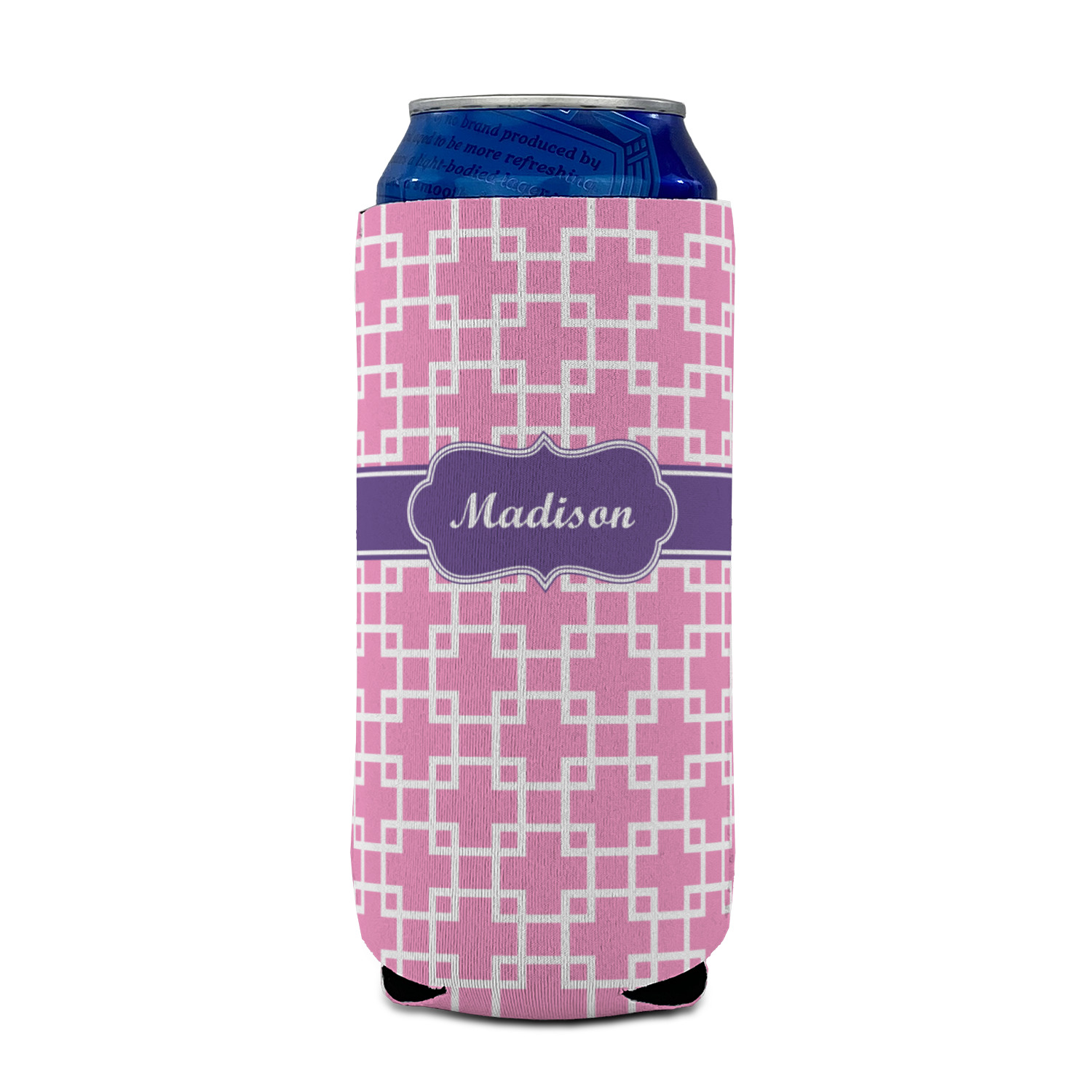This design that is shown is a pink background with white squares, however it is available in multiple colors. We also chose to use a classic ribbon and a decorative rectangular label in purple. Ribbon and Labels are also available in multiple colors.