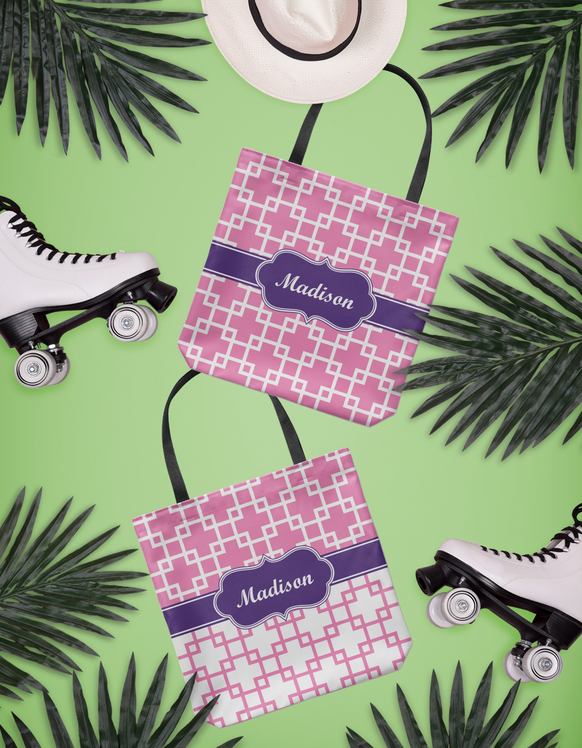Our all purpose Canvas Totes bags are available in 3 sizes and in hundreds of different designs with many different prints & patterns, which are available in many different colors. You can customize the labels, the ribbons, the personalization styles and of course the fonts.
