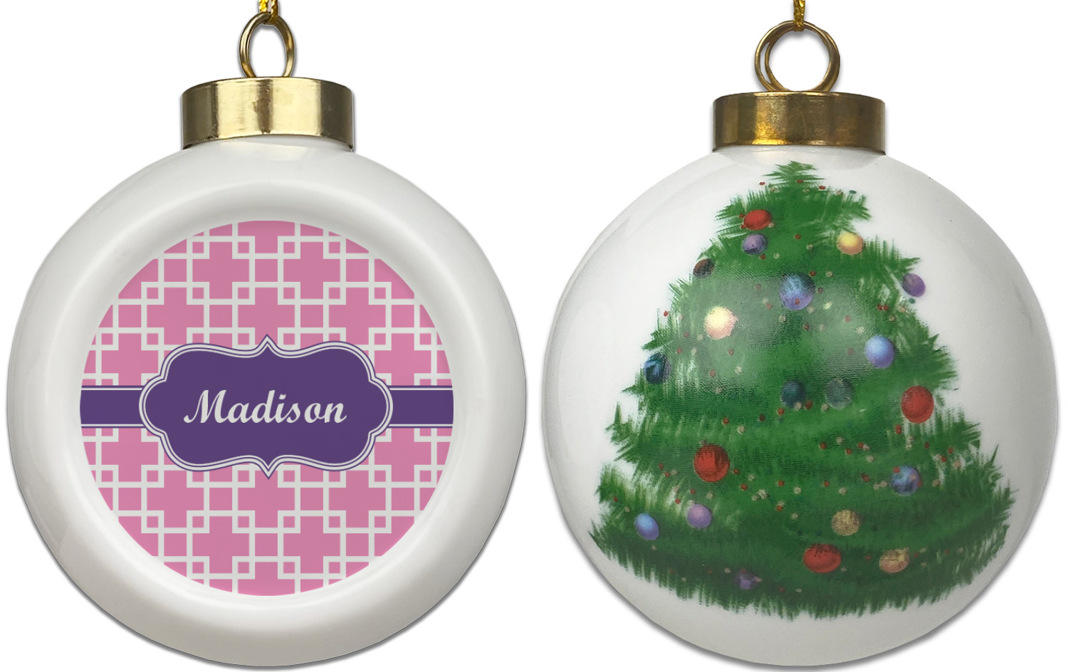 Our Christmas ornaments are a unique ceramic ball shape with a twist as it has a flat face to display your custom design! Select from one of our two design types - Christmas Tree or Poinsettia Garland - to adorn the curved back of your personal design. Each ornament measures 3H x 2.5W x 2D accompanied with a gold string accent for finishing touches to hang on your beautiful Christmas tree!