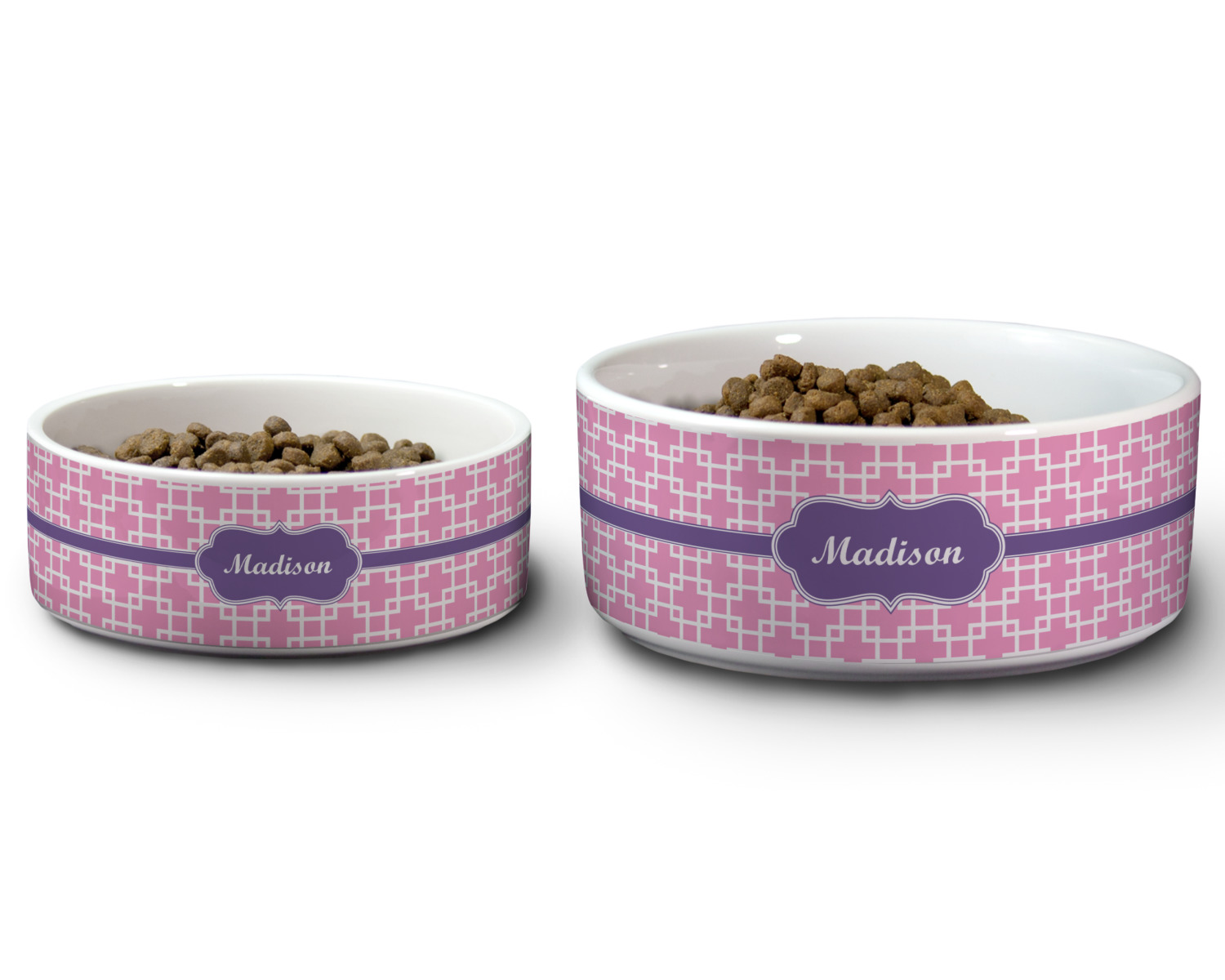 Our customized, ceramic dog bowls allow you to fashion a durable, yet expressive gift for your pet. These bowls are fashionably versatile; they suit both cats and dogs and can hold either food or water. Add your pet's name or favorite color to the design, and spruce up his/her eating area with one or two personalized pet bowls!