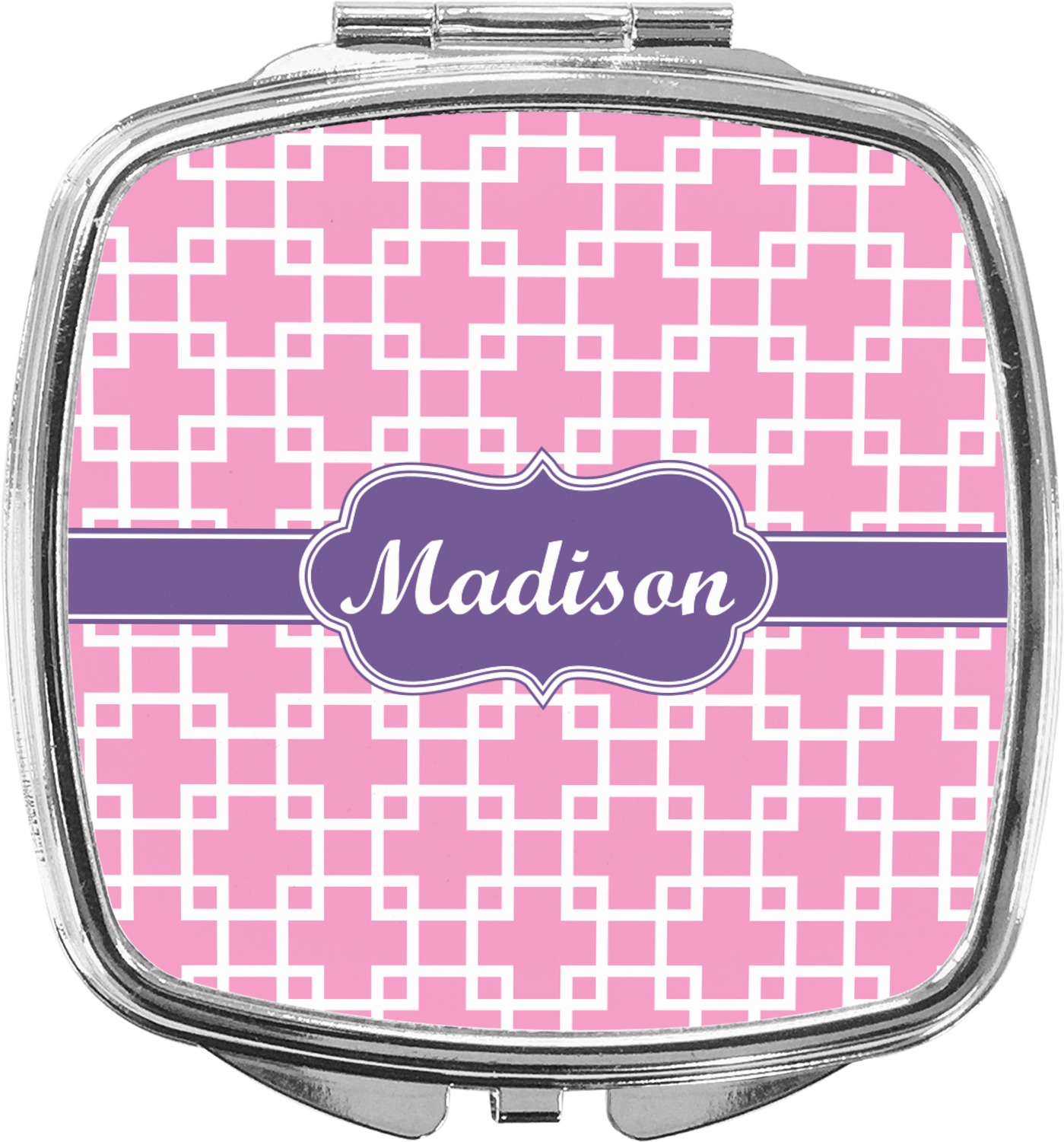 We offer many prints and patterns and many of our patterns are available in 45 different colors. You can personalized the compact mirrors with a name, a monogram or just an initial. We offer several different label, ribbon and font choices. Our customization system lets you create your very own custom & unique product and it lets you preview it before you purchase.