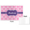 This design that is shown is a pink background with white squares, however it is available in multiple colors. We also chose to use a classic ribbon and a decorative rectangular label in purple. Ribbon and Labels are also available in multiple colors.