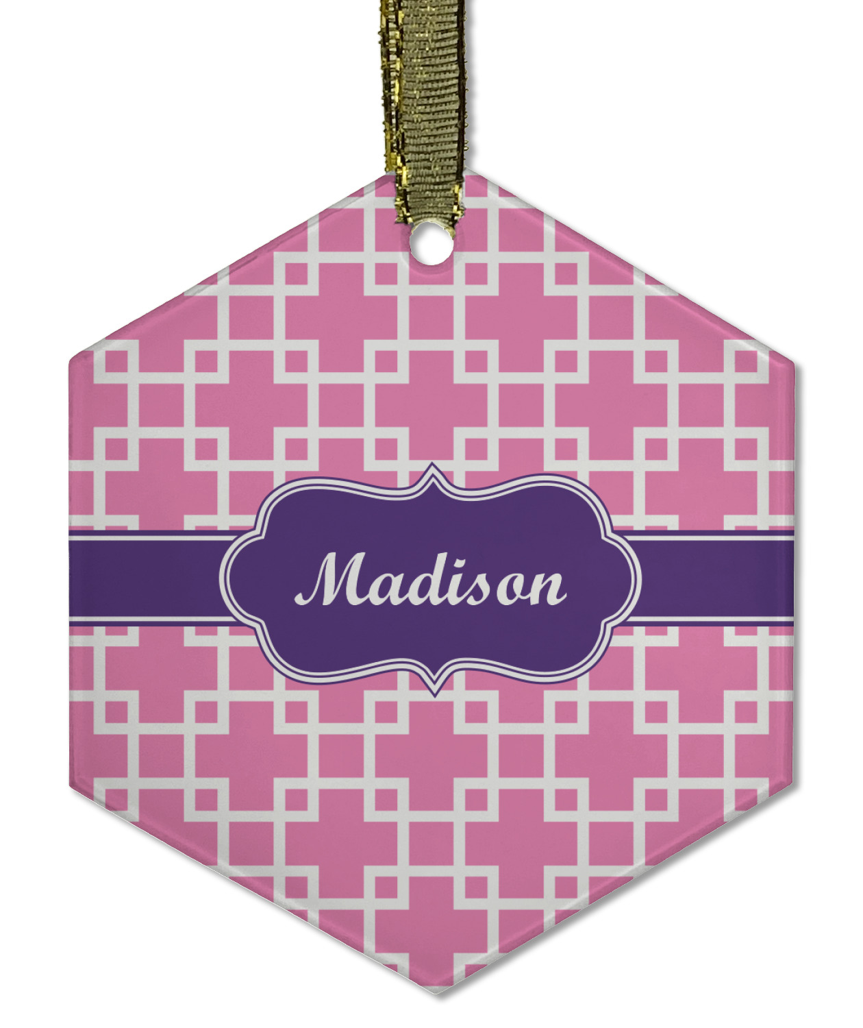 Each of our flat glass ornaments come with a gold string to hang on your Christmas tree with style! We offer two different shapes - flat, round ball or a hexagon. Both glass ornaments have a frosted coating on one side where we print your design while the other side is a clear gloss to give your personalized ornament a sheen finish. Our flat round glass ornament is approximately 3.5" x 3.5" while the flat hexagon ornaments are approximately 3.5" x 3".