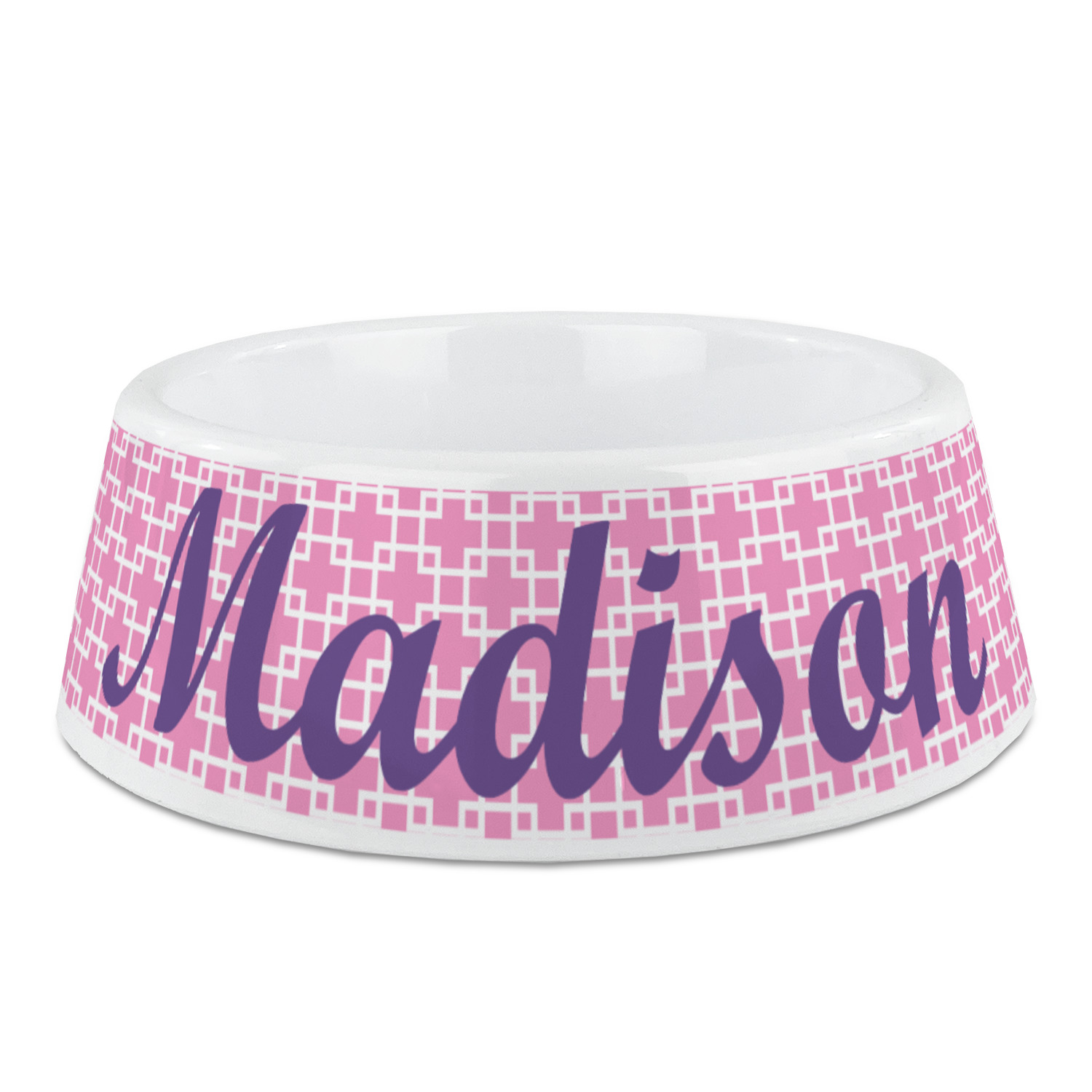 This design that is shown is a pink background with white squares, however it is available in multiple colors. We also chose to use a classic ribbon and a decorative rectangular label in purple. Ribbon and Labels are also available in multiple colors.