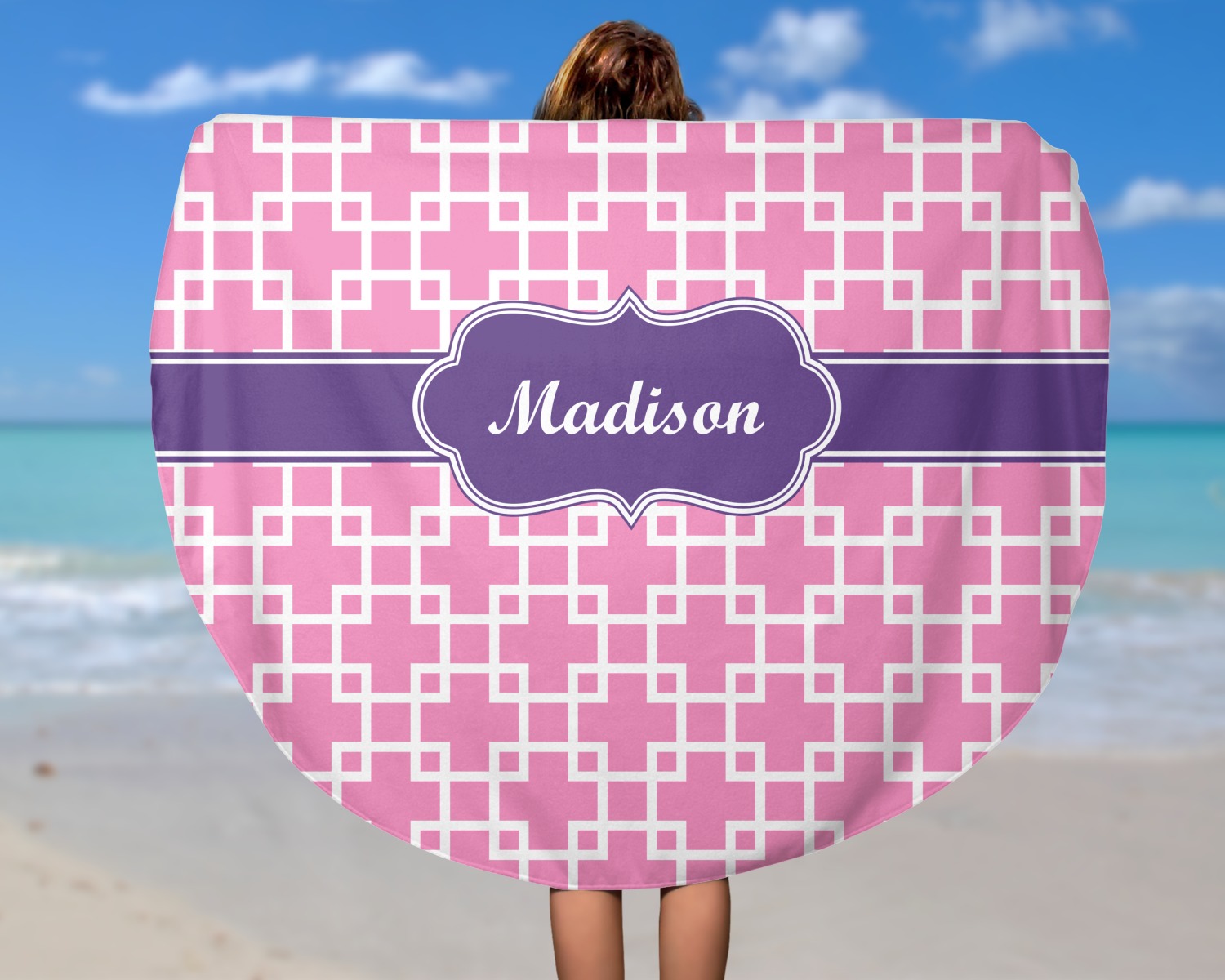 Think out of the box on your next beach, pool, or picnic day in style on your personalized round towel. This must have durable accessory is the perfect size for keeping you, and your possessions out of the sand. Sprawl out in the sun without getting your hands dirty, the unique round design allows for a full range of motion.