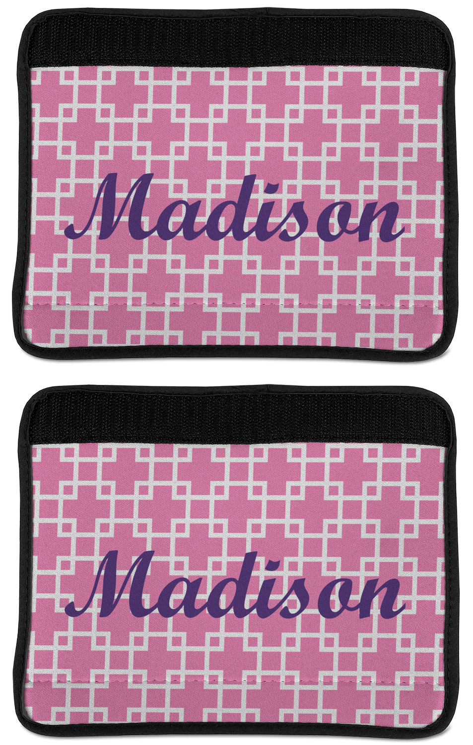 Made from neoprene, our seat belt strap covers wrap around the belt itself and have a Velcro tab for easy attachment and closure. The belt's edges are trimmed with a black polyester for a secure finish. Each cover is 9.5 by 7 inches when open and 9.5 by 2.5 inches when closed. We print your personalized design on the face of the seat belt pad.