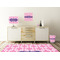 This design that is shown is a pink background with white squares, however it is available in multiple colors. We also chose to use a classic ribbon and a decorative rectangular label in purple. Ribbon and Labels are also available in multiple colors.