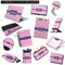 This design that is shown is a pink background with white squares, however it is available in multiple colors. We also chose to use a classic ribbon and a decorative rectangular label in purple. Ribbon and Labels are also available in multiple colors.