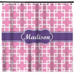 This design that is shown is a pink background with white squares, however it is available in multiple colors. We also chose to use a classic ribbon and a decorative rectangular label in purple. Ribbon and Labels are also available in multiple colors.