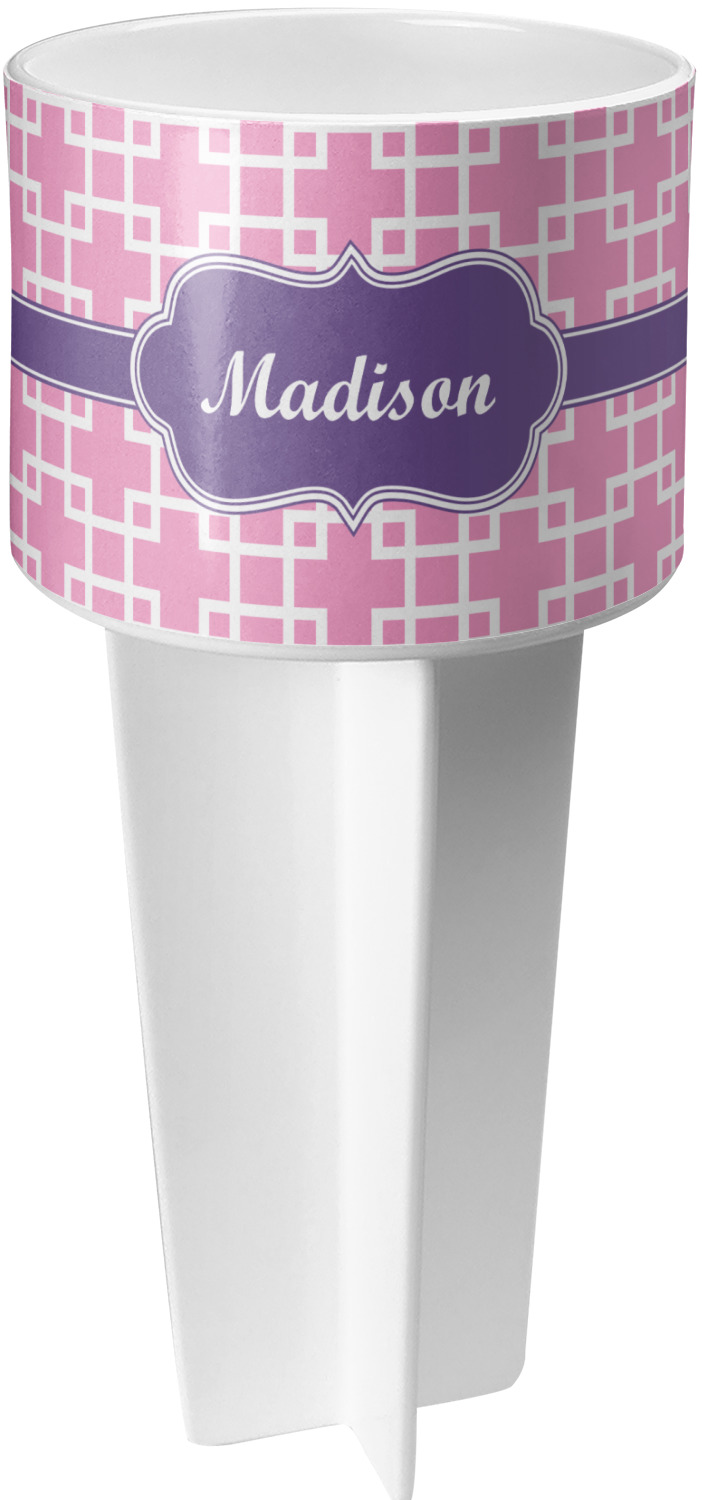 This cup holder has a large stake at its bottom that anchors it to the sand or ground below, while the cup holder rests above the stake. The entire drink holder is made of durable plastic and displays your customization around the cup holder portion. We sell these personalized beach spikers in two different colors: black and white.