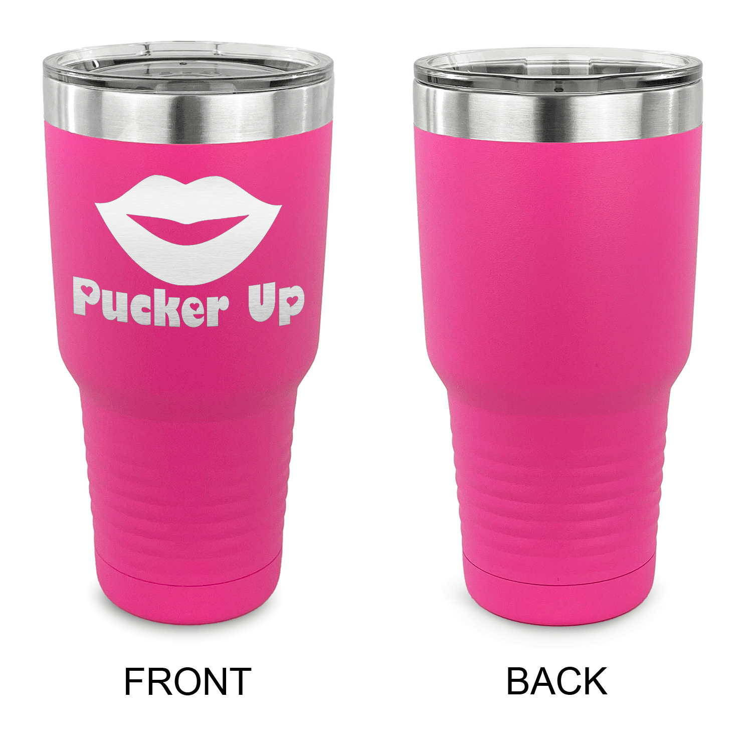 With the 5 colors - Black, Navy, Red, Pink and Coral, you are sure to find a cup to fit your personality. You can chose to engrave on the front or the front and back of the cup. Use our design studio to design your own cup and we laser engrave it for you.