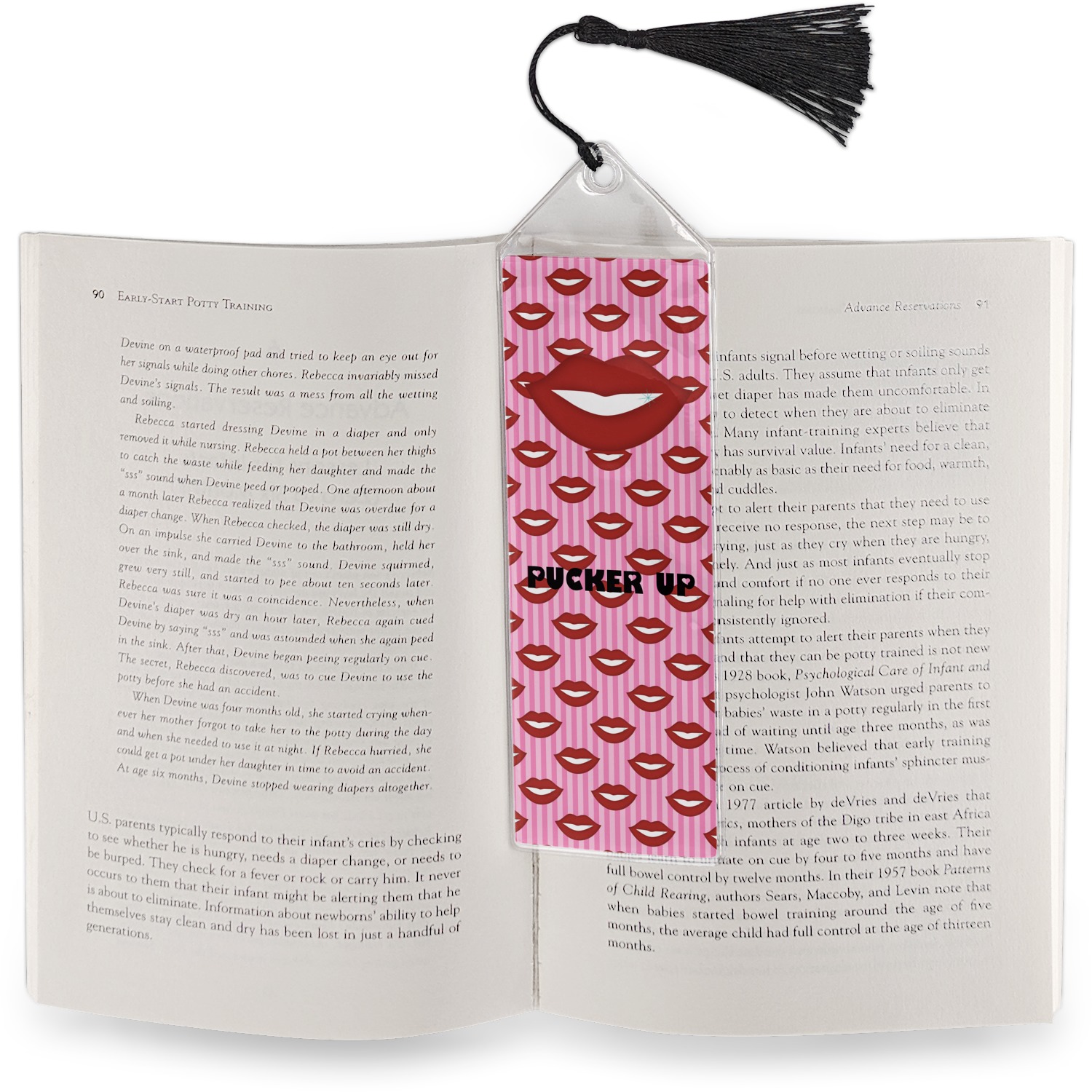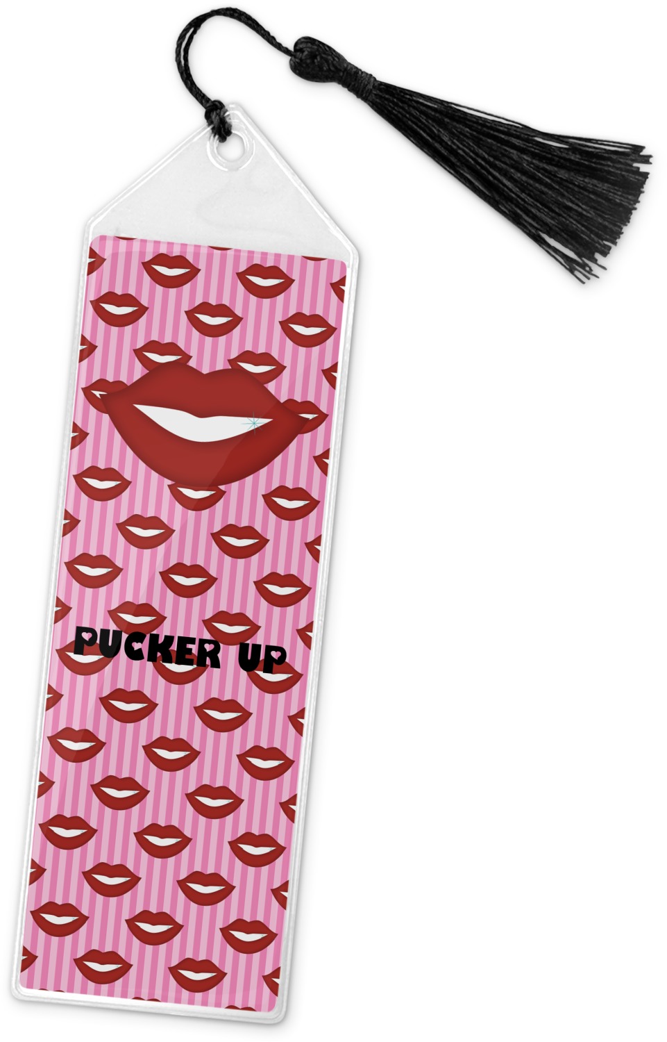 Your personalized bookmark is made of a sturdy, clear vinyl, and is approximately 7.5" x 2.25". We display your personalization on vinyl inserts that are placed on both sides. Accompanying each book marker is a black, fringe tassel that attaches to the reinforced, triangular header.