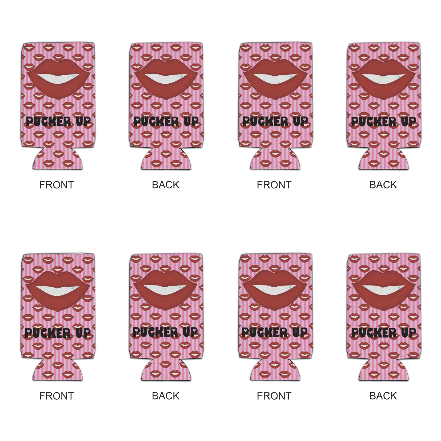 This Lips / Pucker Up design was created by very own Tina D'Astoli for her make up bag. We thought it was beautiful enough to convert to a full fledged design for all our products. It is a layered design with striped in the background (Tina of course chose pink; the stripes are re-color-able), layered with lips. Tina also chose to the use a large graphic and text layout - with lips and the words "Pucker Up" in a black with the Holes are Hearts font.