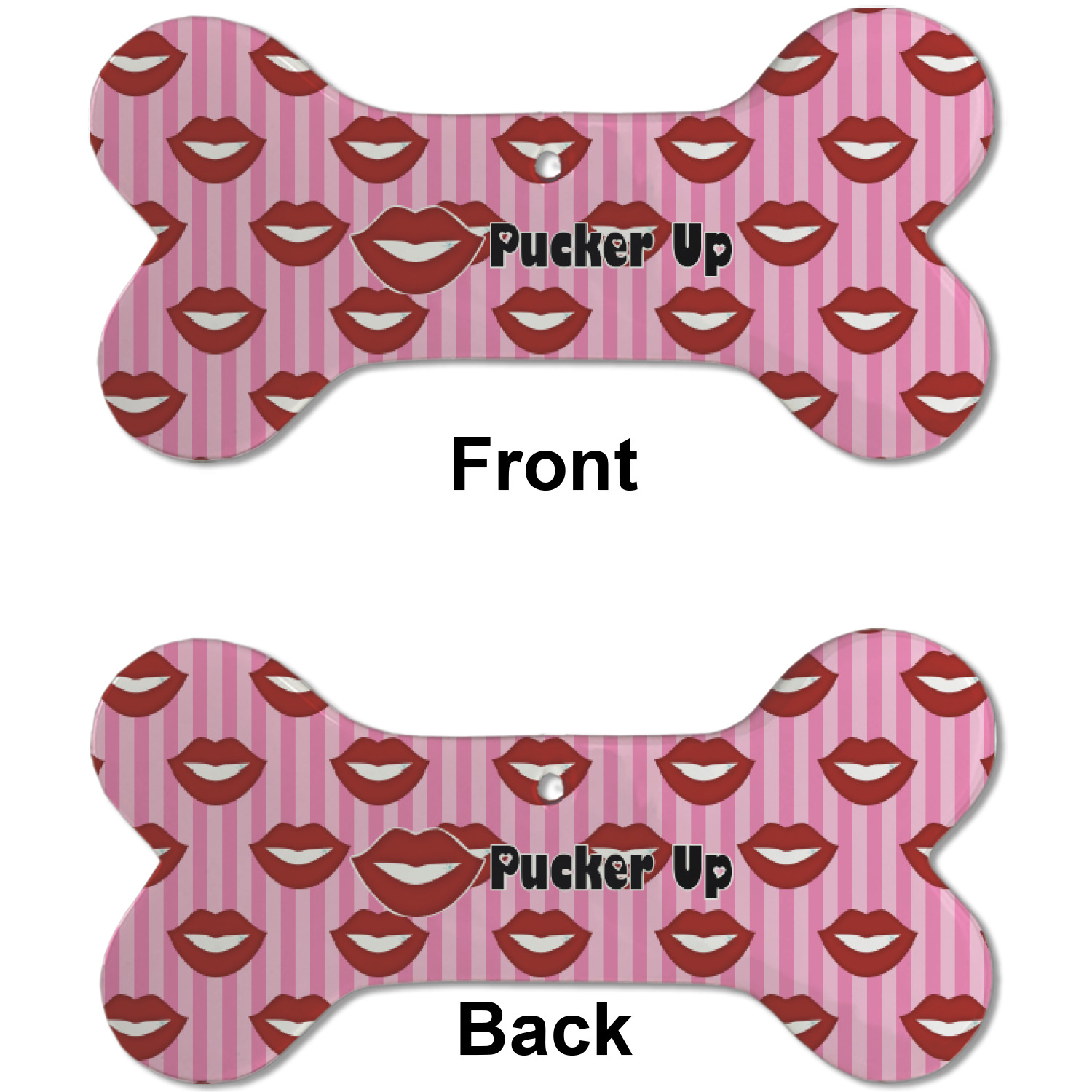 This Lips / Pucker Up design was created by very own Tina D'Astoli for her make up bag. We thought it was beautiful enough to convert to a full fledged design for all our products. It is a layered design with striped in the background (Tina of course chose pink; the stripes are re-color-able), layered with lips. Tina also chose to the use a large graphic and text layout - with lips and the words "Pucker Up" in a black with the Holes are Hearts font.