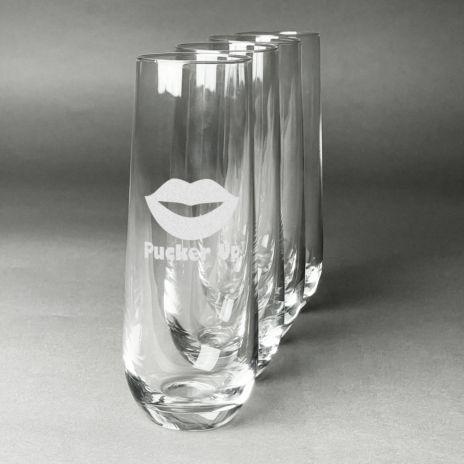 Design your custom stemless champagne flutes and we will then laser engrave your unique design on them for you. Whether they are a special gift for a bride and groom, for your New Years Eve party, or a bachelorette party you are sure to be able to add a custom personalized touch to make them perfect for the occasion.