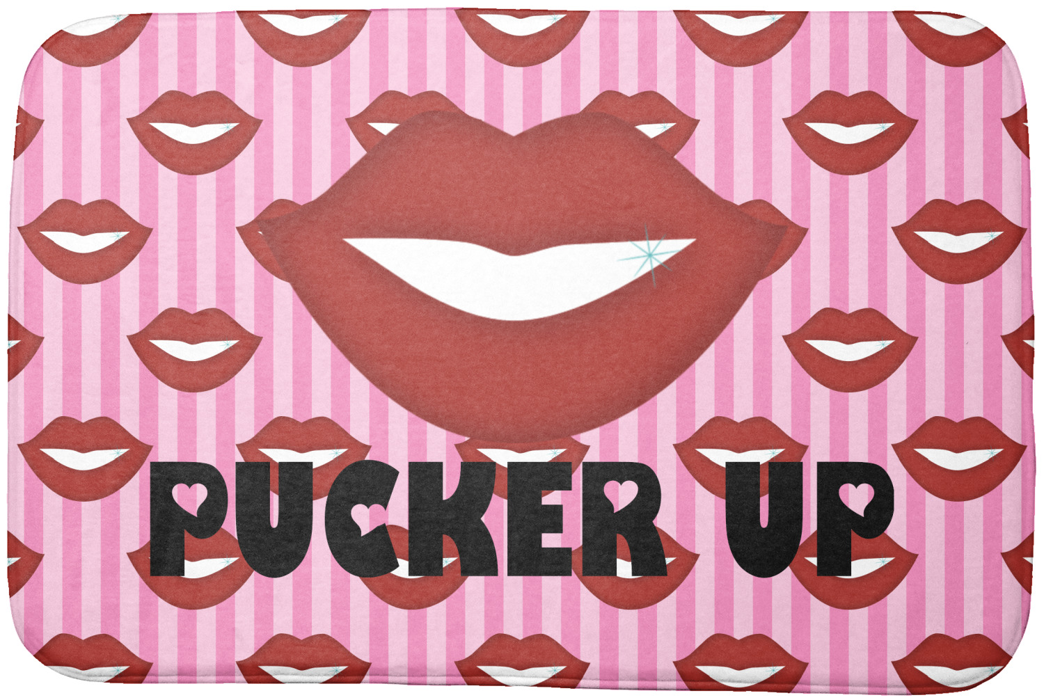 This Lips / Pucker Up design was created by very own Tina D'Astoli for her make up bag. We thought it was beautiful enough to convert to a full fledged design for all our products. It is a layered design with striped in the background (Tina of course chose pink; the stripes are re-color-able), layered with lips. Tina also chose to the use a large graphic and text layout - with lips and the words "Pucker Up" in a black with the Holes are Hearts font.