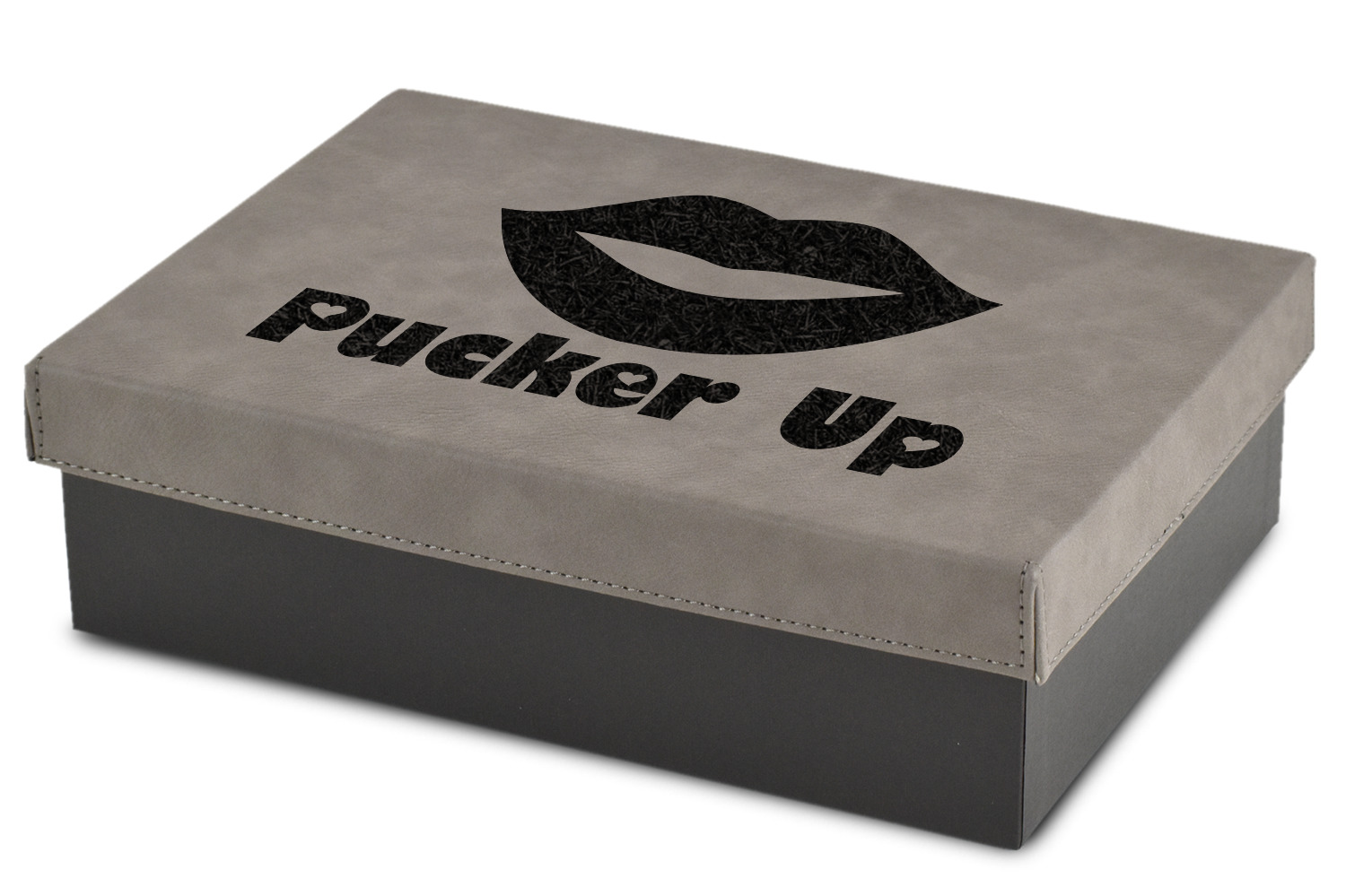 These gift boxes are available in 3 different sizes to accommodate various sized gifts. Available in gray as a neutral color for any occasion as well as to showcase your design boldly. Engraved with a laser this high quality paper board and faux leather gift box is unique and makes any gift stand out.