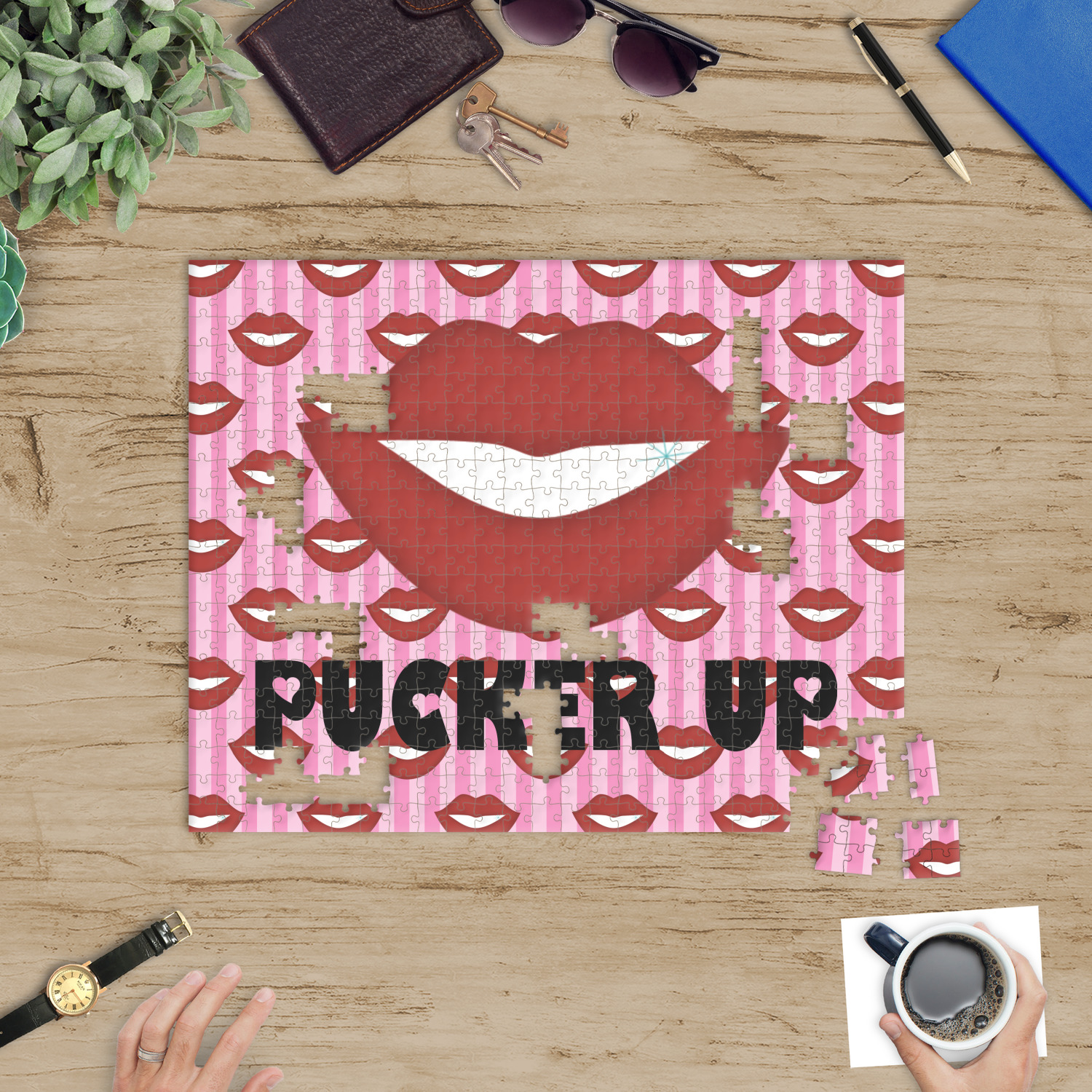 You can also upload your logo or art that you or your kids drew. To create more challenging jigsaw puzzles, you can create a pattern from with your logo or artwork. You can also add other elements such as text or personalization.