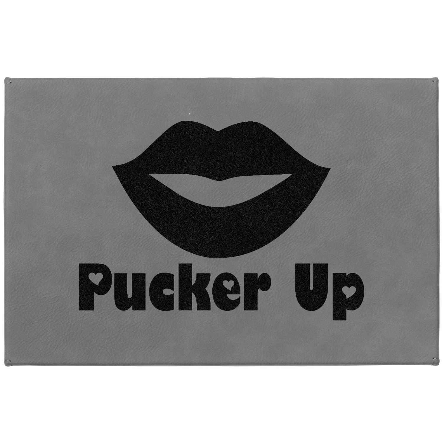 This Lips / Pucker Up design was created by very own Tina D'Astoli for her make up bag. We thought it was beautiful enough to convert to a full fledged design for all our products. It is a layered design with striped in the background (Tina of course chose pink; the stripes are re-color-able), layered with lips. Tina also chose to the use a large graphic and text layout - with lips and the words "Pucker Up" in a black with the Holes are Hearts font.