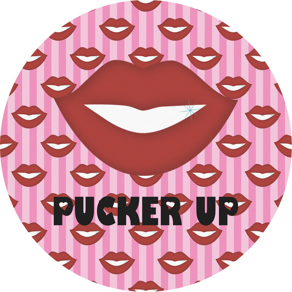This Lips / Pucker Up design was created by very own Tina D'Astoli for her make up bag. We thought it was beautiful enough to convert to a full fledged design for all our products. It is a layered design with striped in the background (Tina of course chose pink; the stripes are re-color-able), layered with lips. Tina also chose to the use a large graphic and text layout - with lips and the words "Pucker Up" in a black with the Holes are Hearts font.