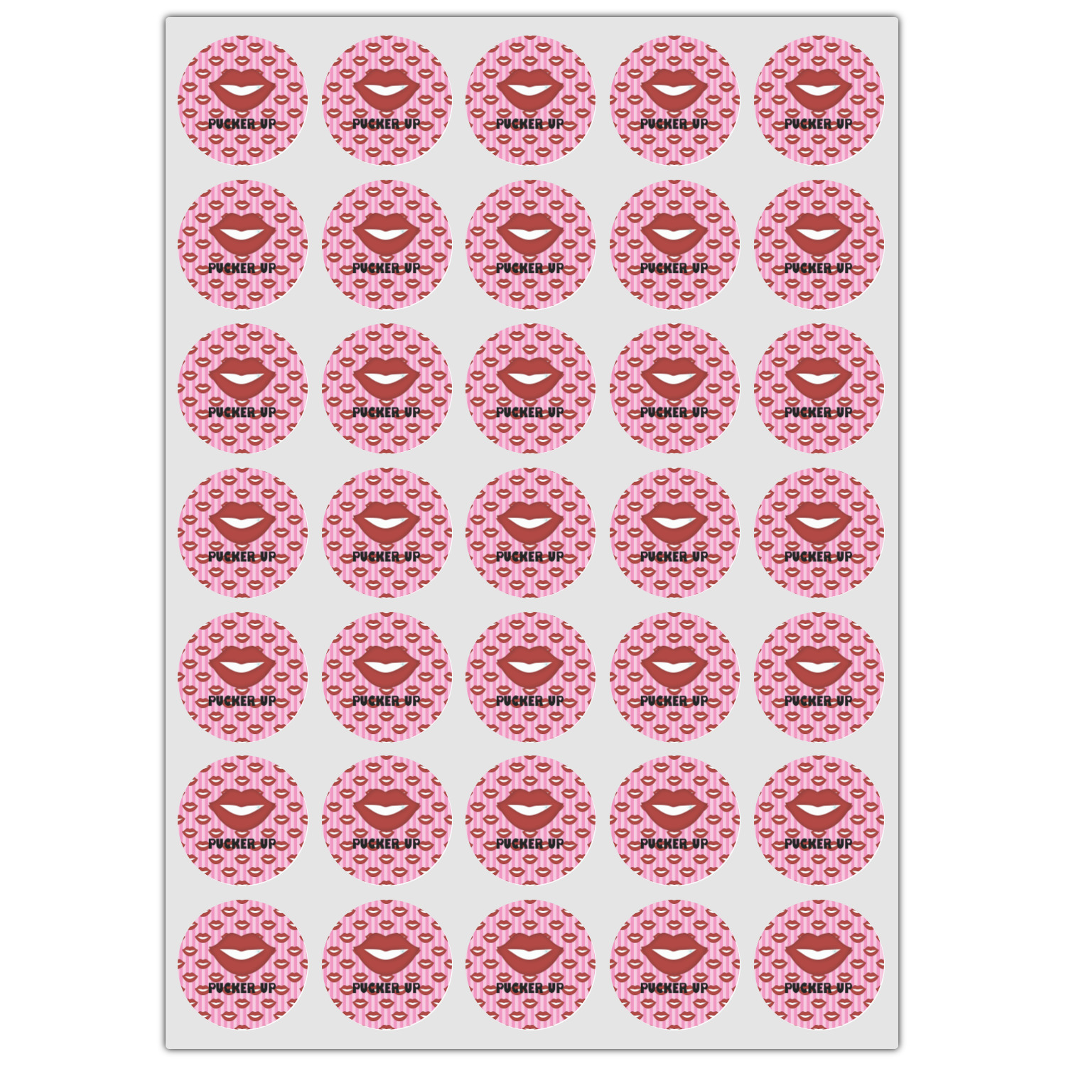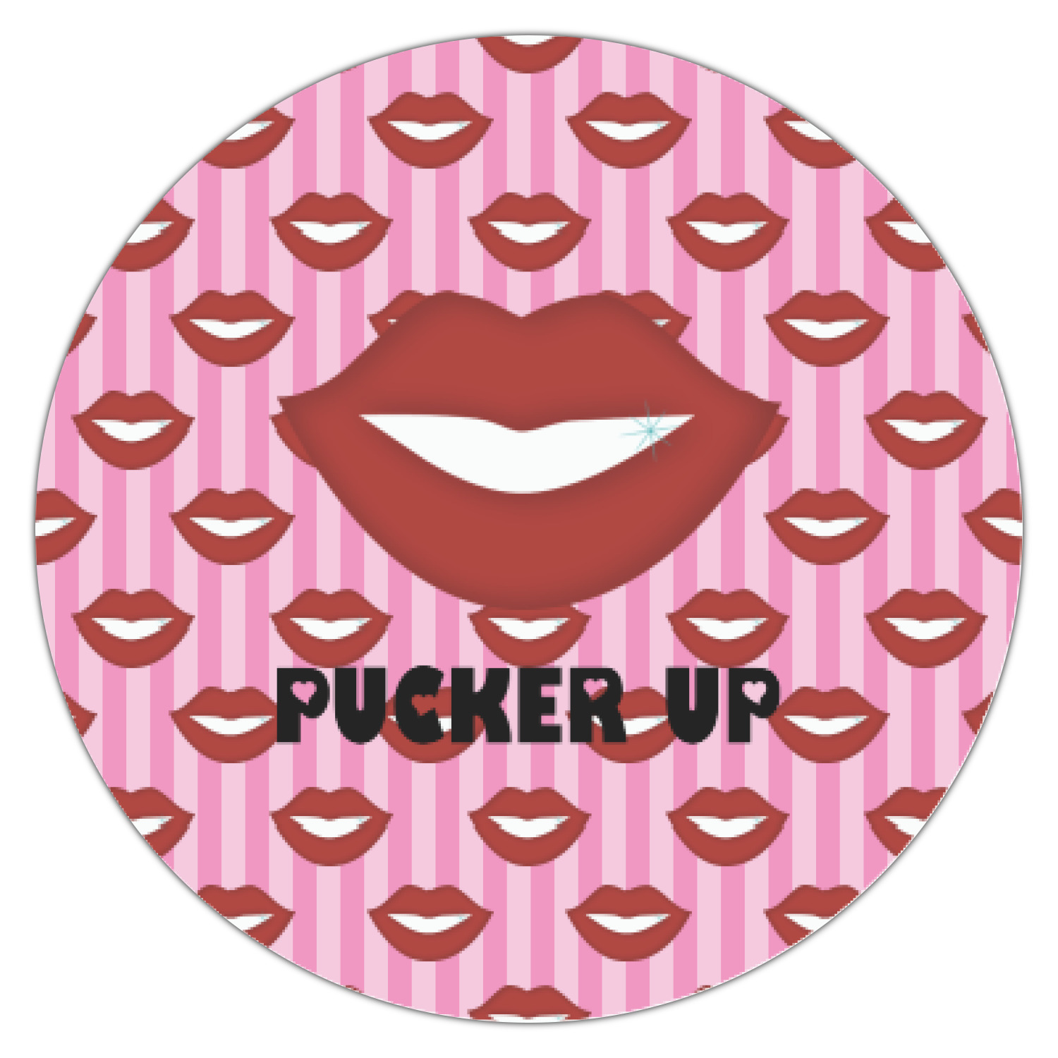 This Lips / Pucker Up design was created by very own Tina D'Astoli for her make up bag. We thought it was beautiful enough to convert to a full fledged design for all our products. It is a layered design with striped in the background (Tina of course chose pink; the stripes are re-color-able), layered with lips. Tina also chose to the use a large graphic and text layout - with lips and the words "Pucker Up" in a black with the Holes are Hearts font.